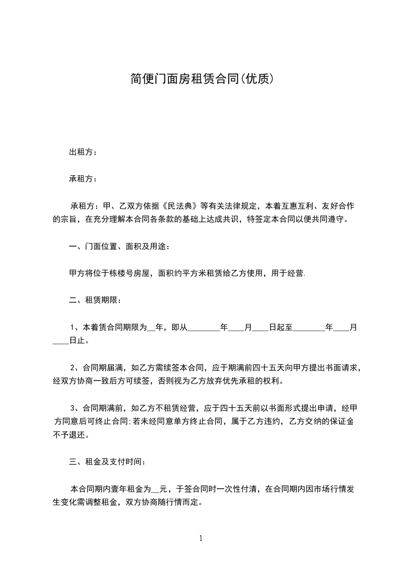 1、本着赁合同期限为__年,即从________年____月____日起至________年____月____日止。