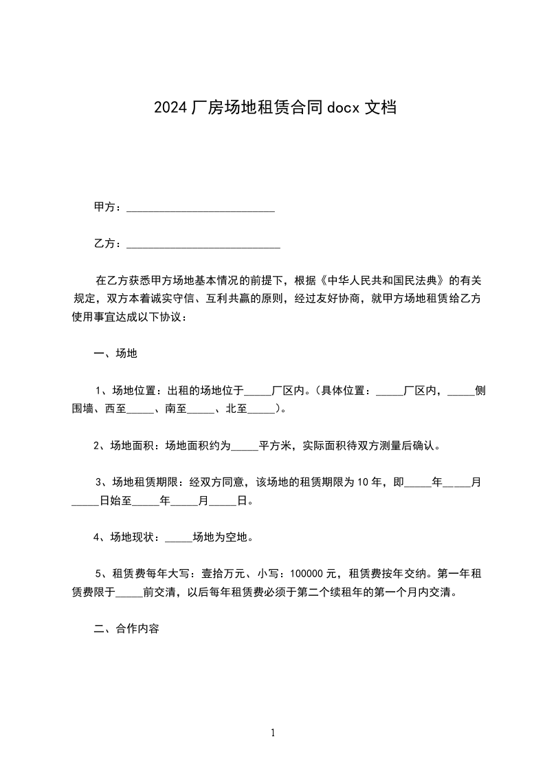 根据《中华人民共和国民法典》及相关法规,甲方将位于市区公路__公里加__米公路西侧处的厂房,场地及办公楼,平房租赁给乙方使用;双方本着互惠互利的原则,经协商一致签订本合同。