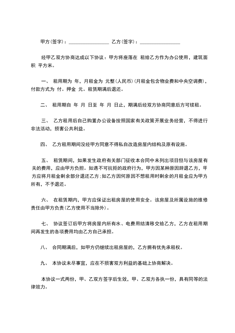 1、乙方向甲方承诺,租赁该房屋仅作为办公使用。