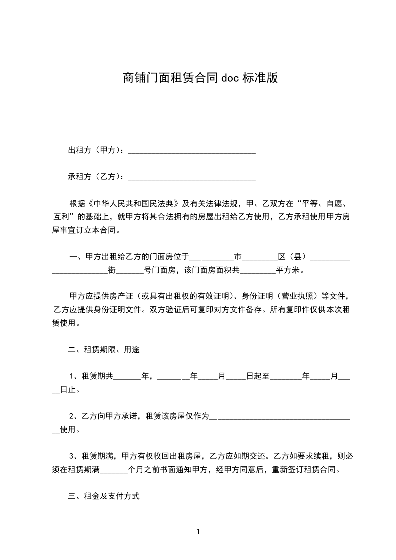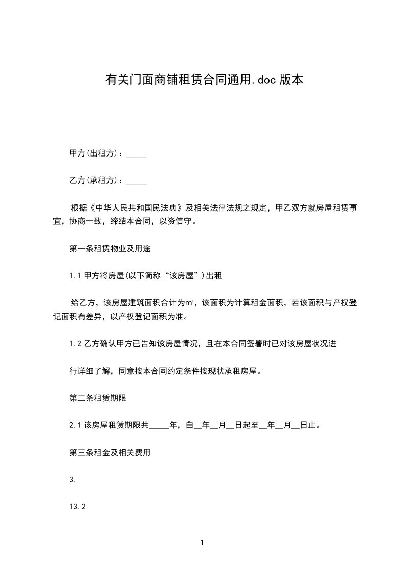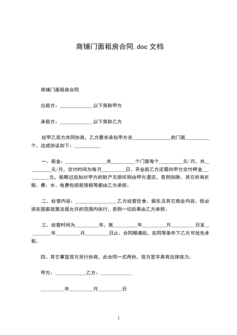 一、甲方将座落于县城中路汽车站运达商场靠车站东大门一间面积为82.5平方米的临街门面租赁给乙方,作使用。