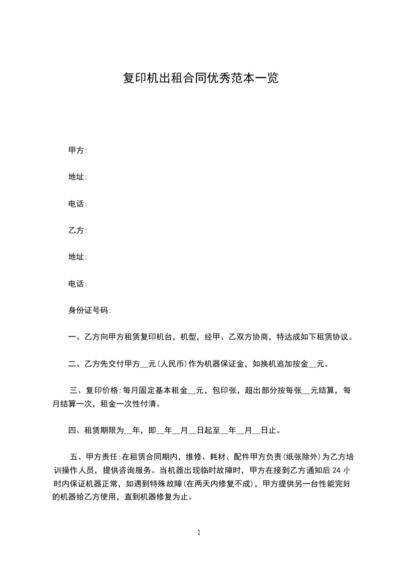三、复印价格:每月固定基本租金__元,包印张,超出部分按每张__元结算,每月结算一次,租金一次性付清。