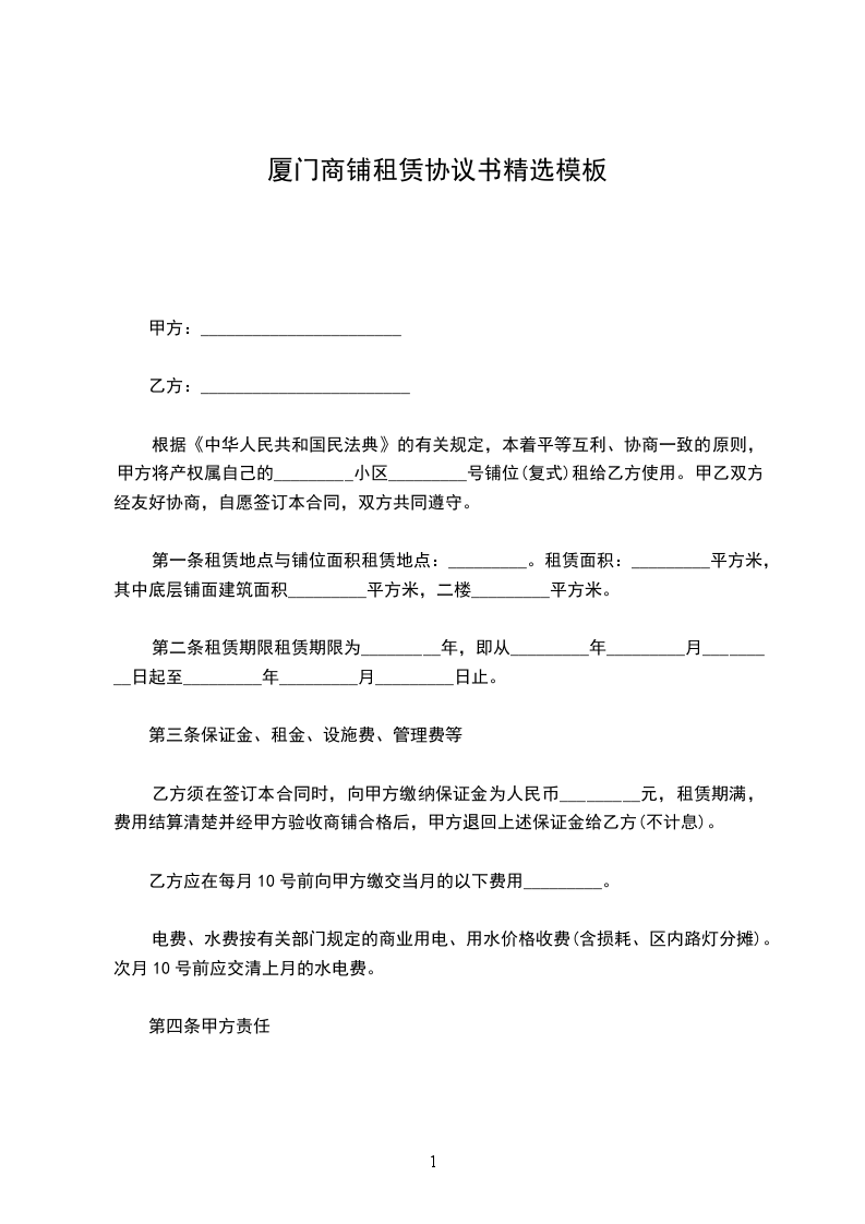 出租之物业座落于厦门市______区____号建筑面积为________平方米。