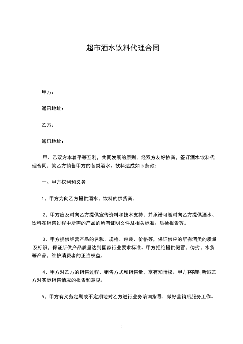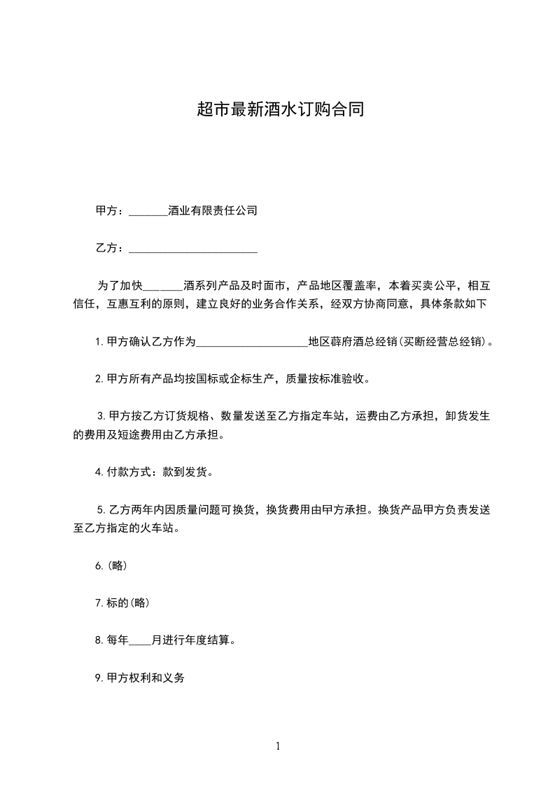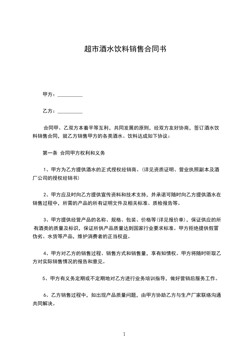为了加快_______酒系列产品及时面市,产品地区覆盖率,本着买卖公平,相互信任,互惠互利的原则,建立良好的业务合作关系,经双方协商同意,具体条款如下: