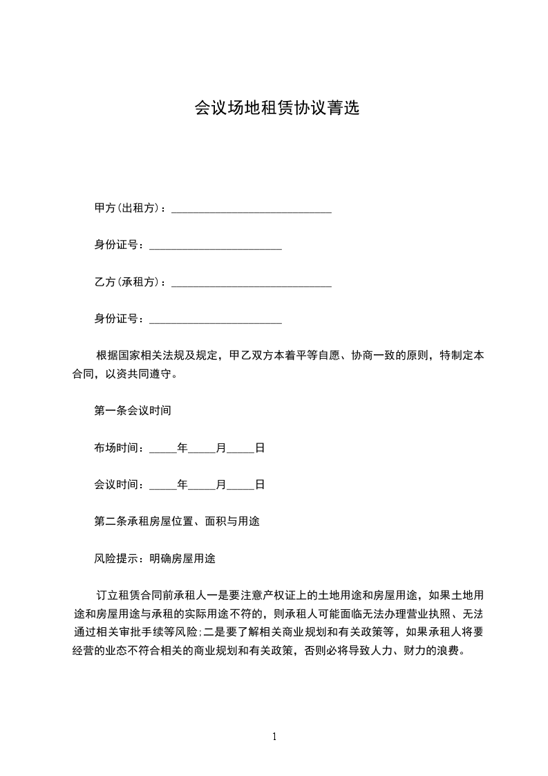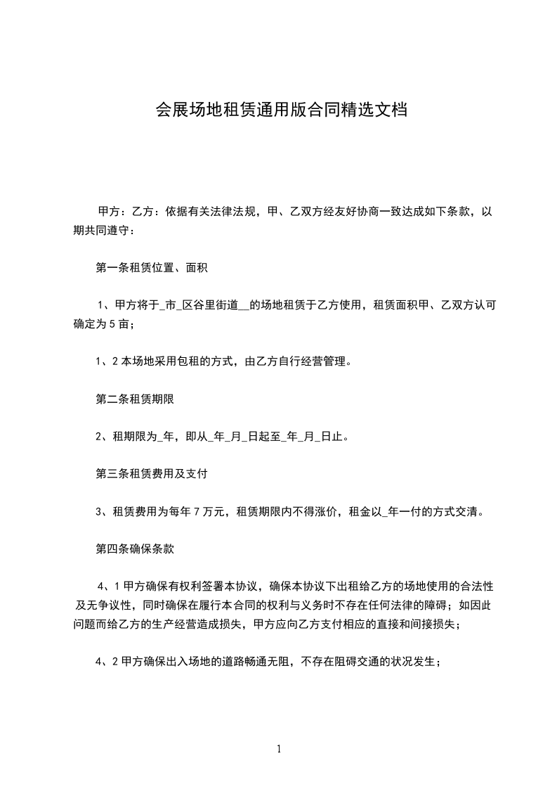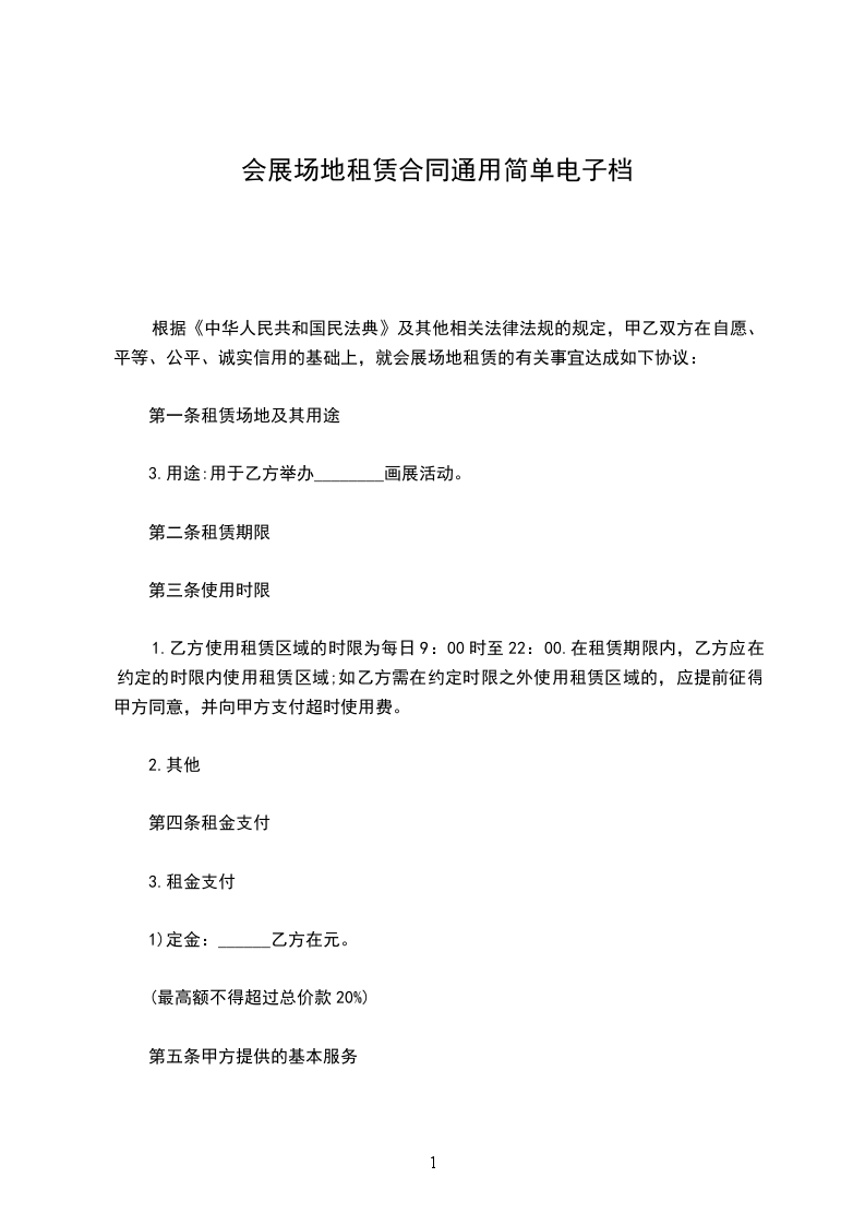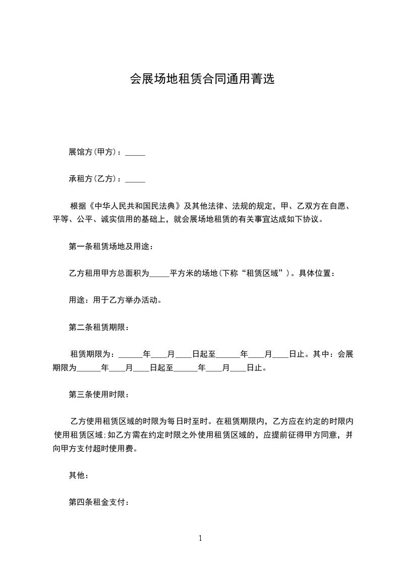 根据《中华人民共和国民法典》及其他法律、法规的规定,甲、乙双方在自愿、平等、公平、诚实信用的基础上,就会展场地租赁的有关事宜达成如下协议。