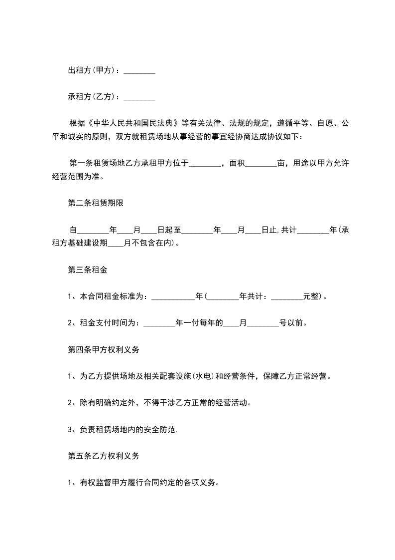 第一条租赁场地及用途: