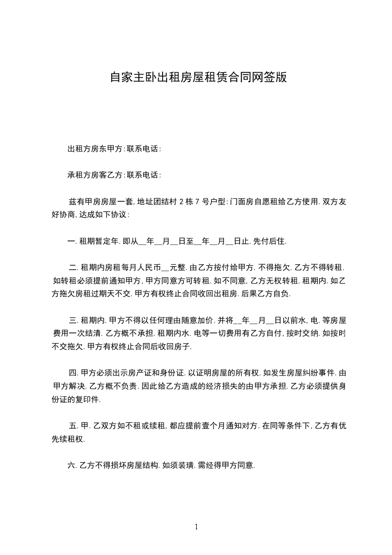 一.租期暂定年.即从__年__月__日至__年__月__日止.先付后住.