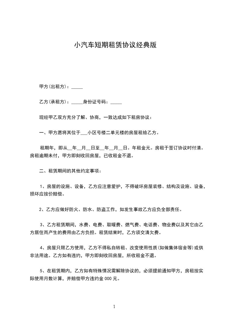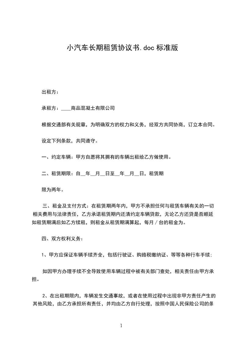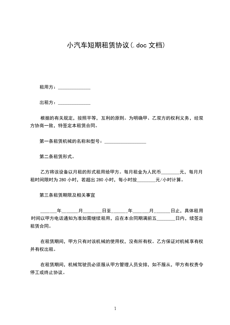 租金每车每天________元,每月为__元,共计元,从车辆交付之日起计算,租用期满结算。