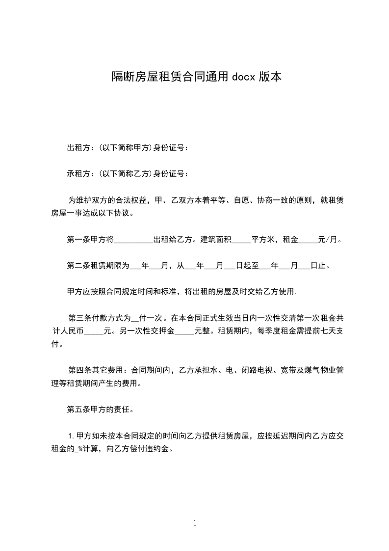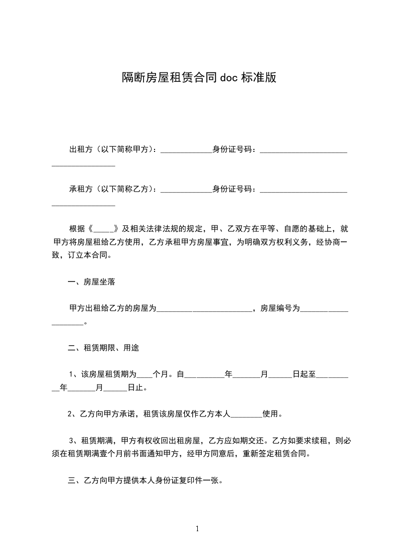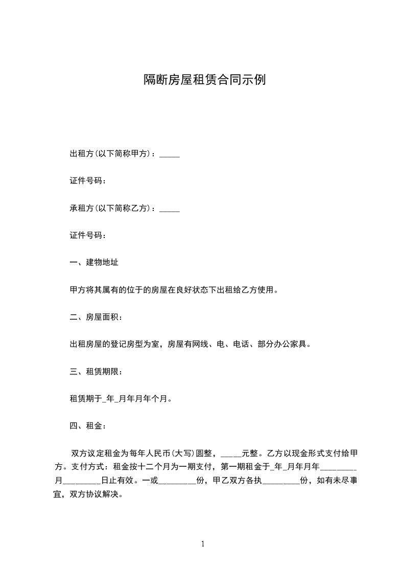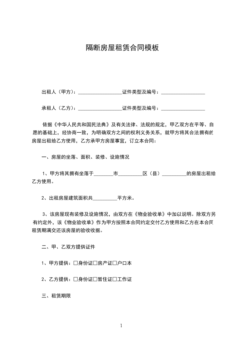 出租人(甲方):__________________证件类型及编号:__________________
