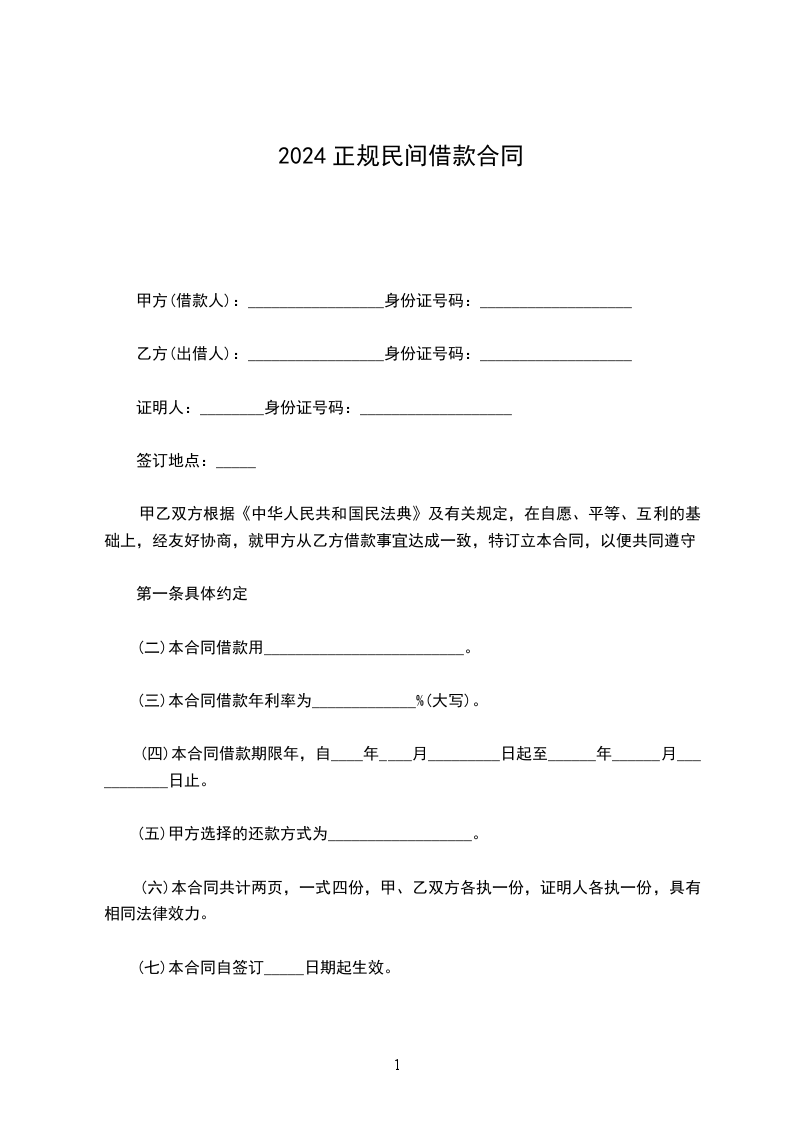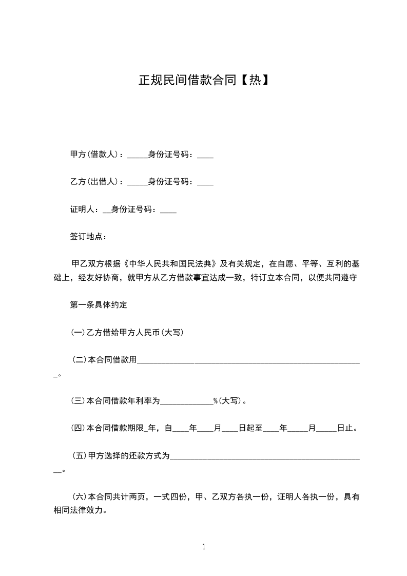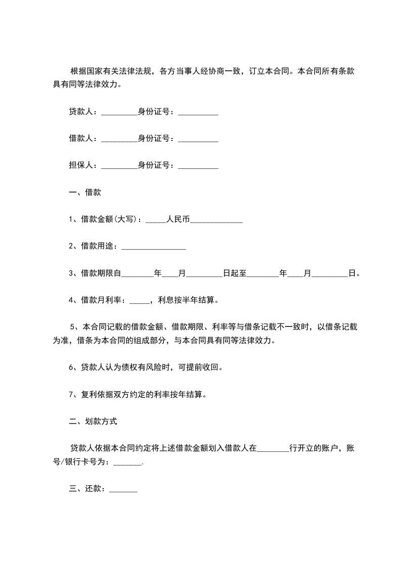 借款方向贷款方借款人民币______万元。