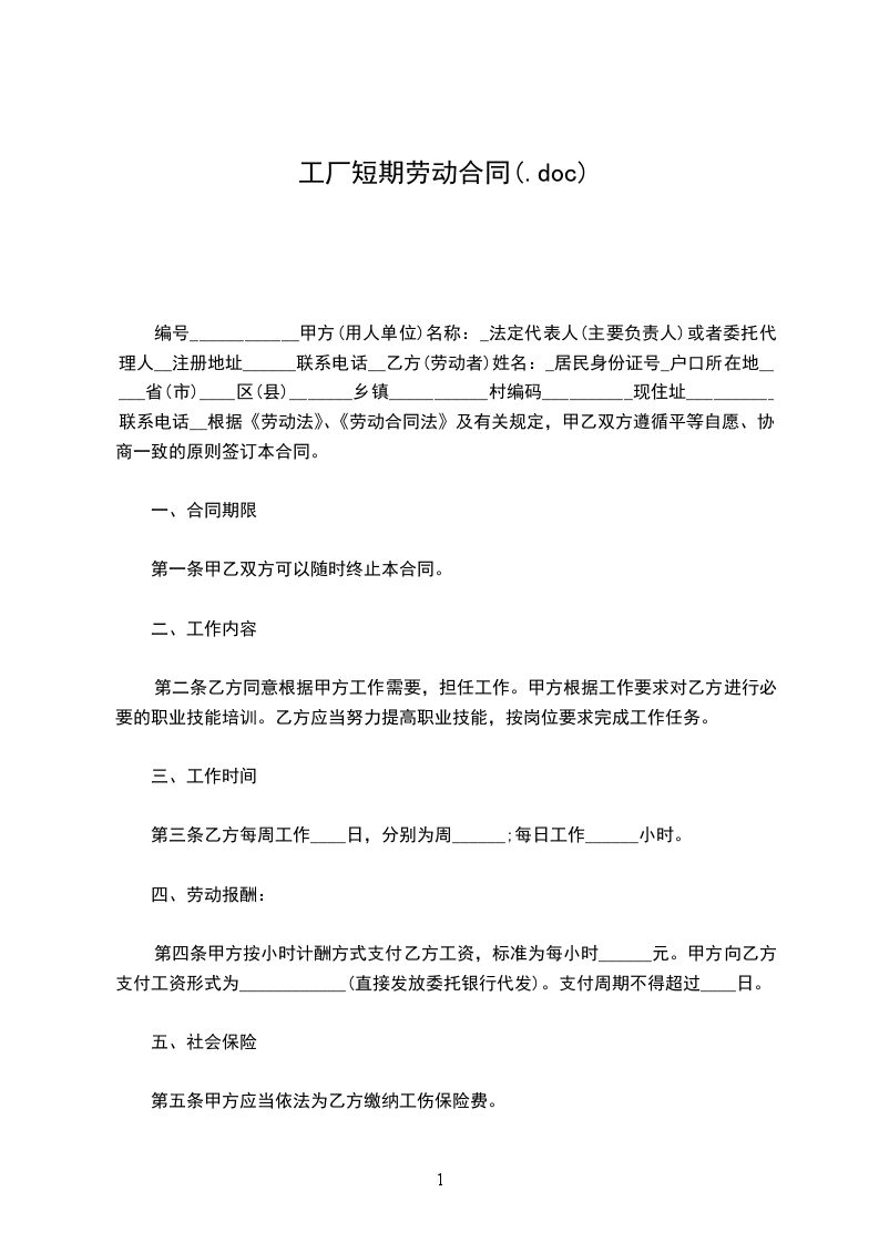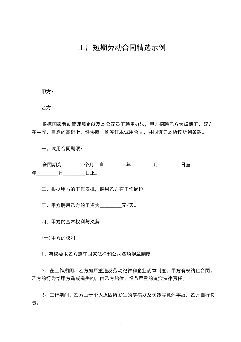 根据国家劳动管理规定以及本公司员工聘用办法,甲方招聘乙方为短期工,双方在平等、自愿的基础上,经协商一致签订本试用合同,共同遵守本协议所列条款。