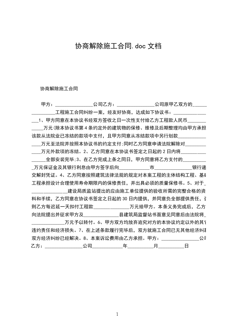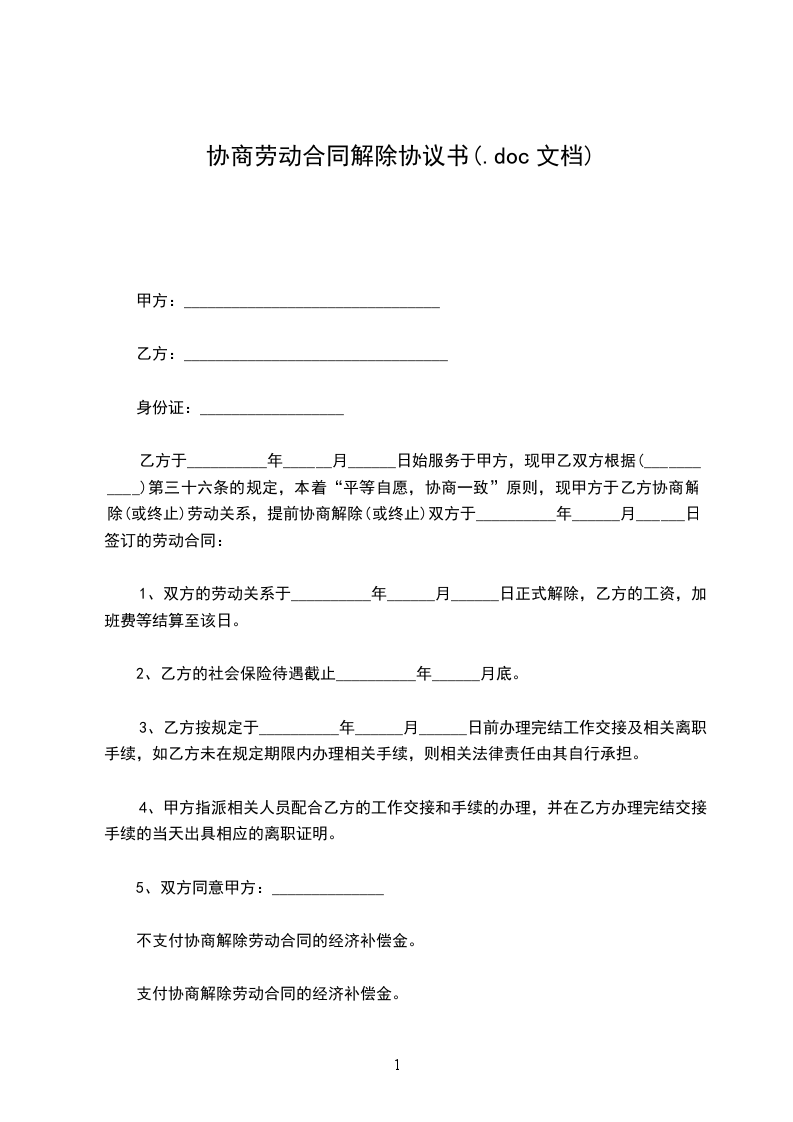 乙方于__________年______月______日始服务于甲方,现甲乙双方根据(___________)第三十六条的规定,本着“平等自愿,协商一致”原则,现甲方于乙方协商解除(或终止)劳动关系,提前协商解除(或终止)双方于__________年______月______日签订的劳动合同: