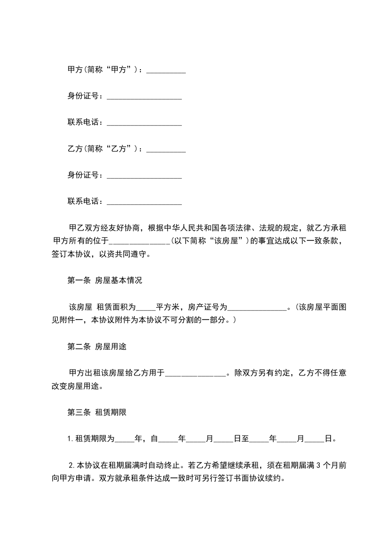 八、租赁期间内,乙方不得擅自将房屋转租、转让、转借;不得利用承租房屋进行非法活动,损害公共利益,否则甲方有权解除合同,收回房屋。