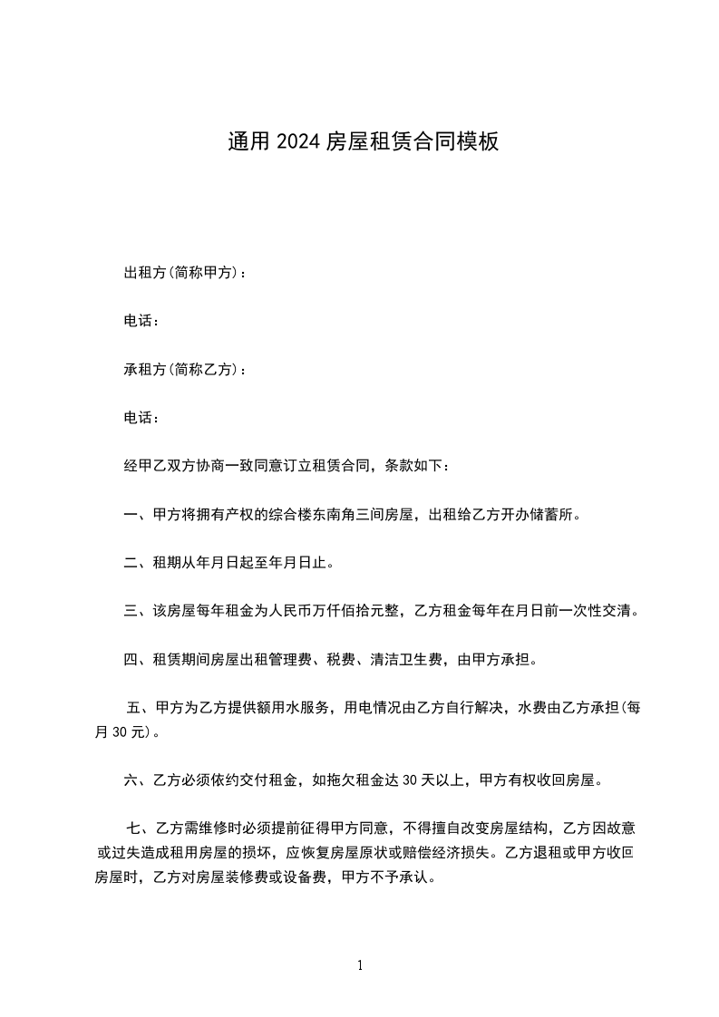 二、本房屋月租金为__元,按年度结算。每年度乙方须提前天向甲方支付租金。乙方不得以任何借口拖欠,否则甲方有权停租并终止合同收回房屋。乙方应付给甲方押金元,作为房屋内部设施水费电费燃气费等综合保证金。等租期圆满结清所有费用后,甲方将押金如数退还给乙方。
