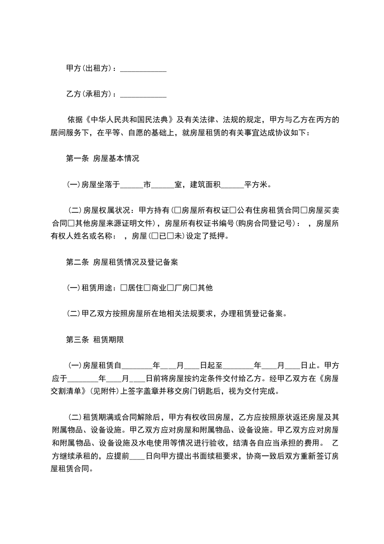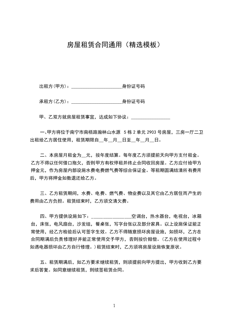 一、甲方将位于南宁市南梧路瀚林山水源5栋2单元2903号房屋,三房一厅二卫出租给乙方居住使用,租赁期限自__年__月__日至__年__月__日。