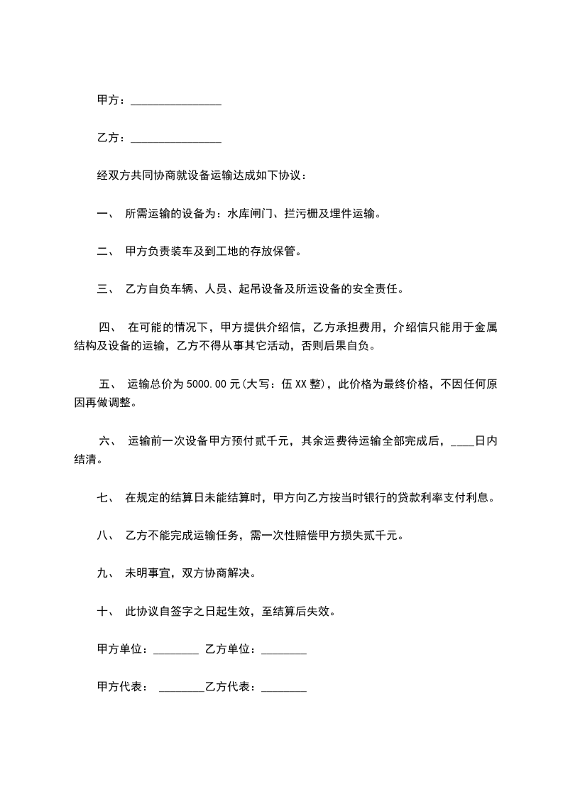 5.发生交通事故,由乙方负完全责任与甲方无任何关系。