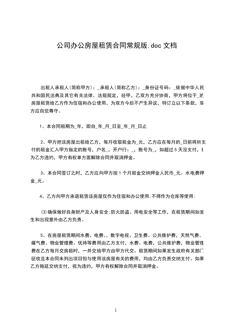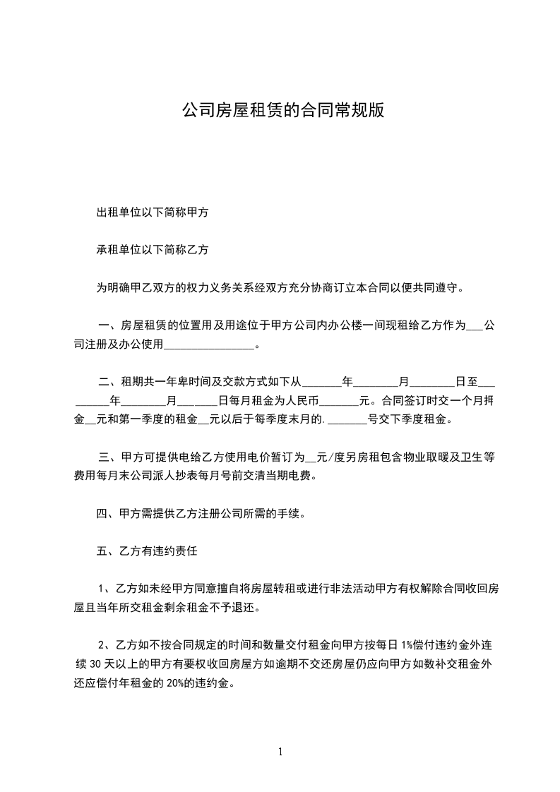 三、甲方可提供电给乙方使用电价暂订为__元/度另房租包含物业取暖及卫生等费用每月末公司派人抄表每月号前交清当期电费。