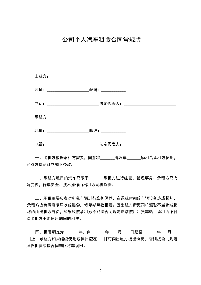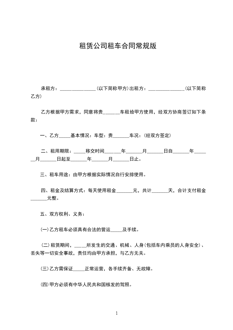 二、租期共一年卑时间及交款方式如下从_______年________月________日至_________年________月_______日每月租金为人民币_______元。合同签订时交一个月押金__元和第一季度的租金__元以后于每季度末月的._______号交下季度租金。