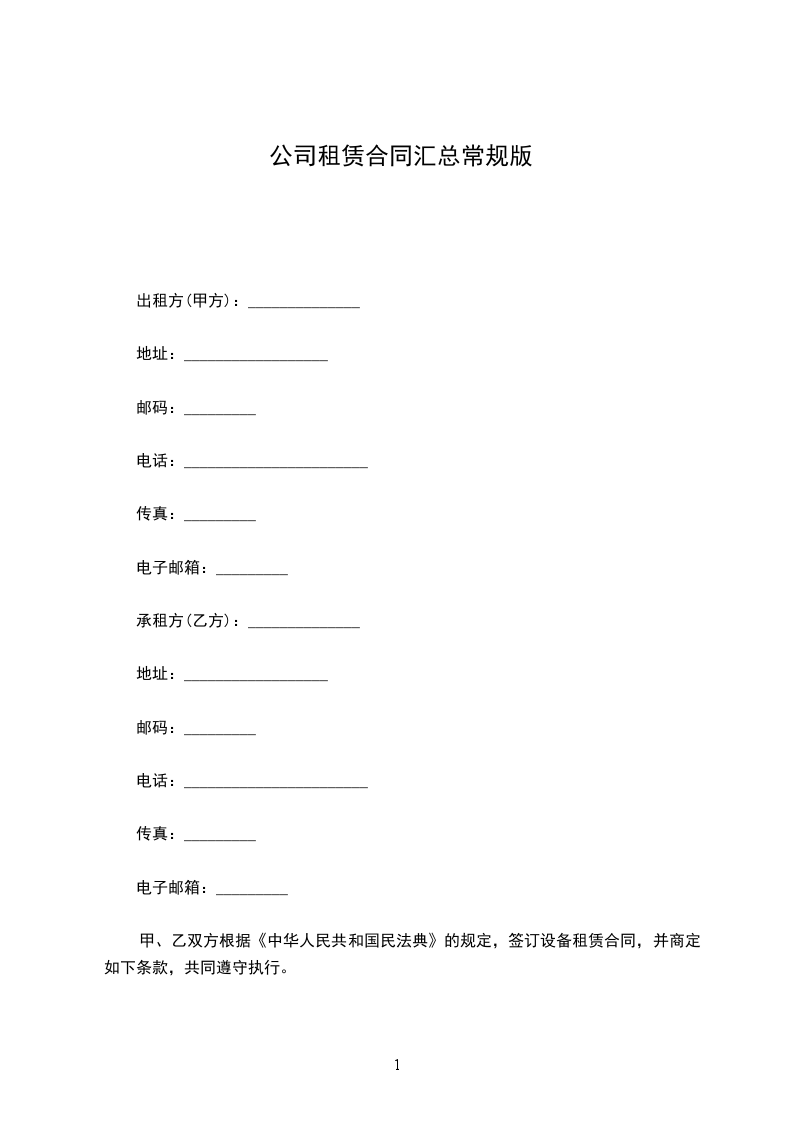 承租单位以下简称乙方