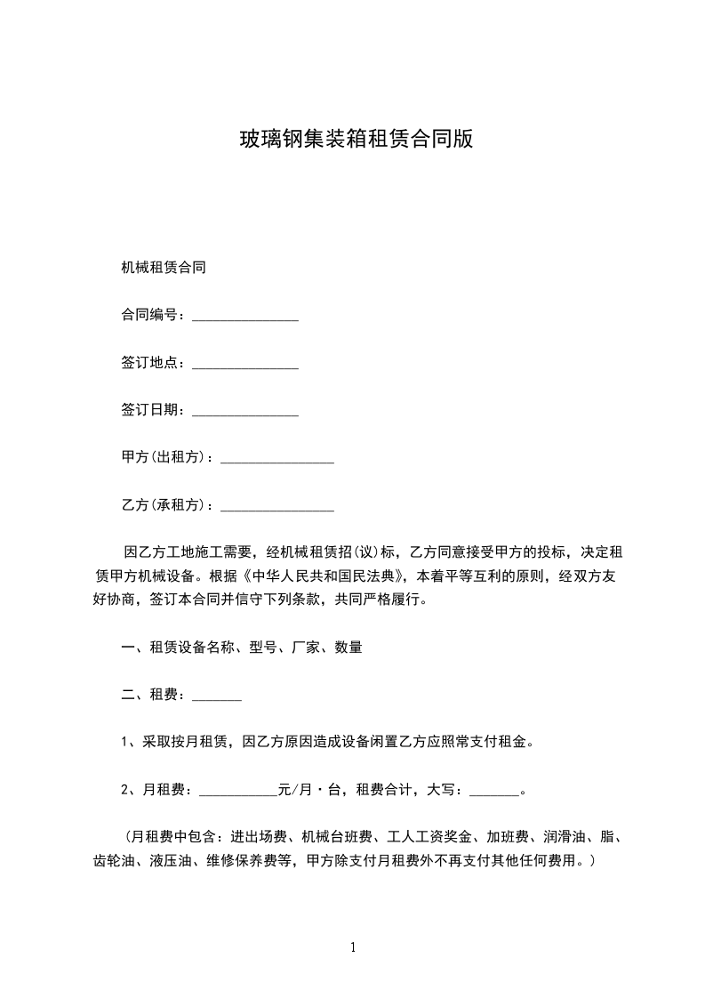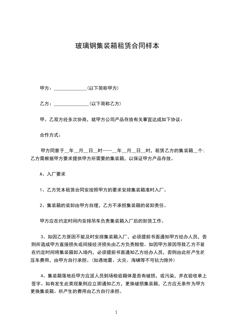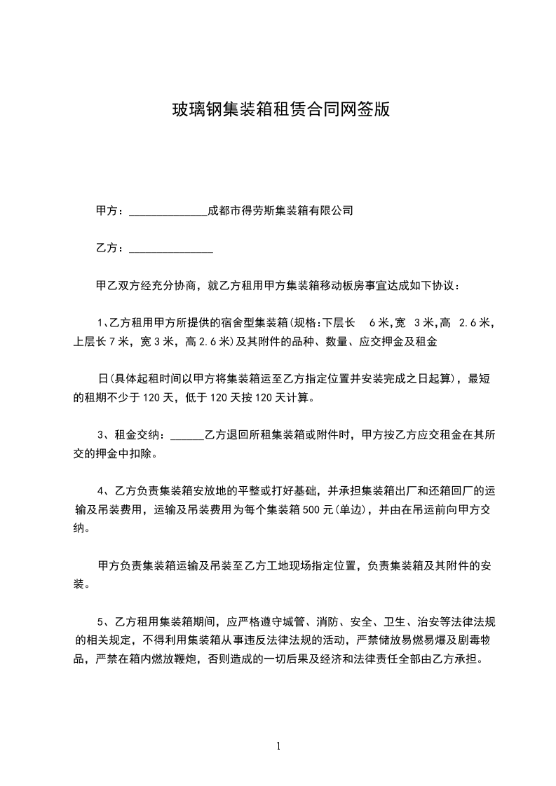 集装箱租赁协议书