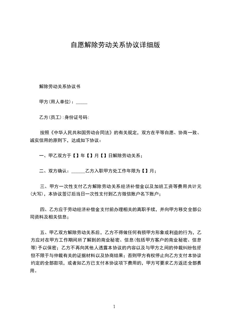 三、甲方一次性支付乙方解除劳动关系经济补偿金以及加班工资等费用共计元(大写),本协议签订后当日一次性支付到乙方微信账户名下账户;