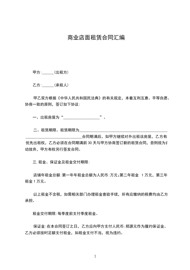 店铺年租金总额:第一年年租金总额为人民币:万元;第二年租金1万元,第三年租金1万元。