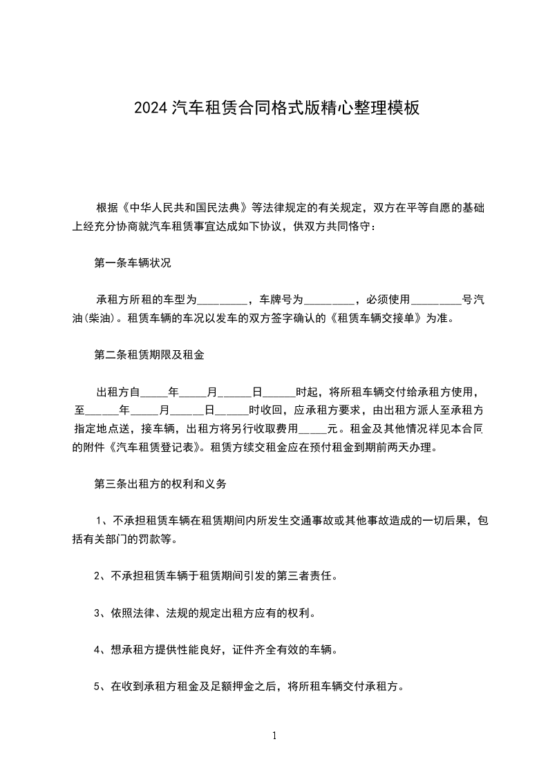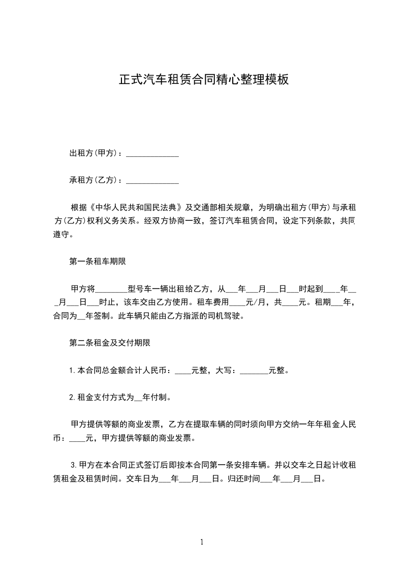承租方所租的车型为_________,车牌号为_________,必须使用_________号汽油(柴油)。租赁车辆的车况以发车的双方签字确认的《租赁车辆交接单》为准。