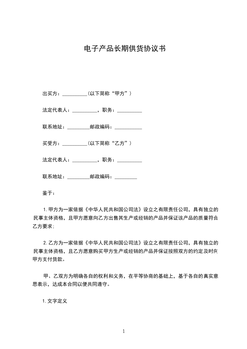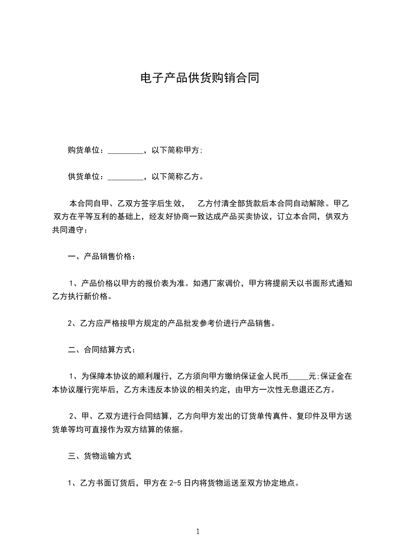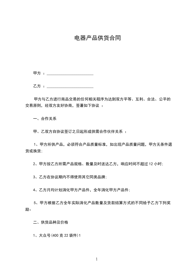 1.注:乙方必须对甲方的供货价格保密。