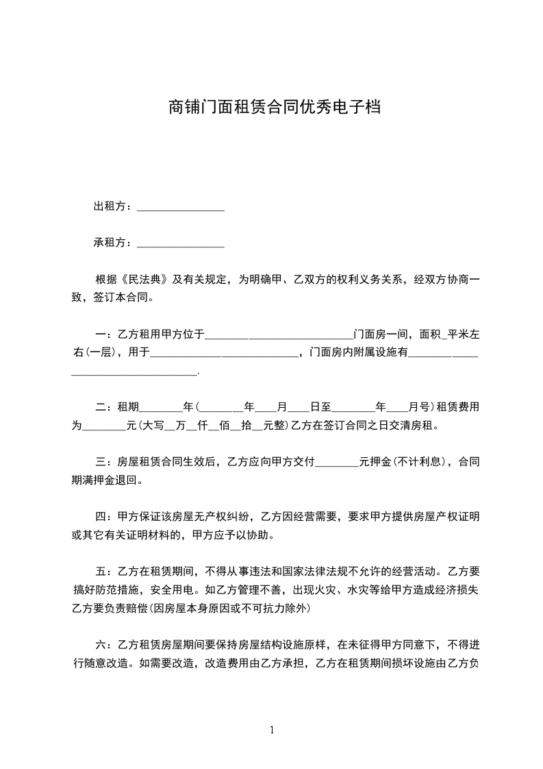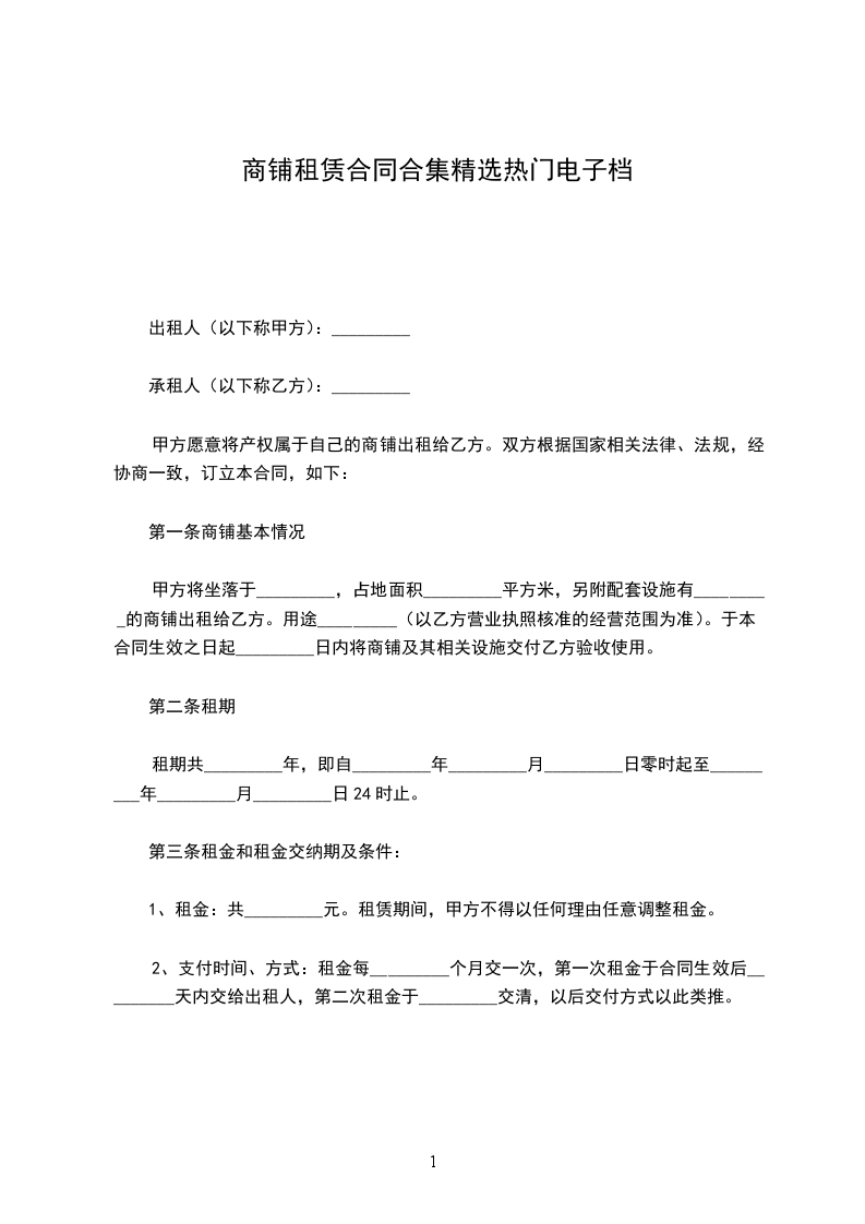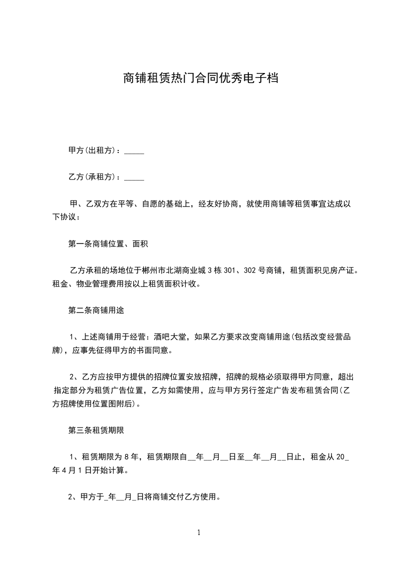 甲、乙双方在平等、自愿的基础上,经友好协商,就使用商铺等租赁事宜达成以下协议:
