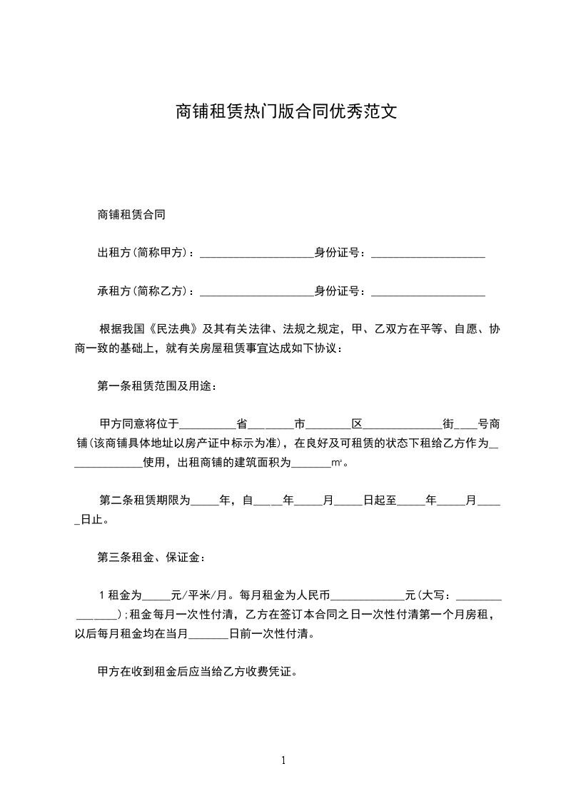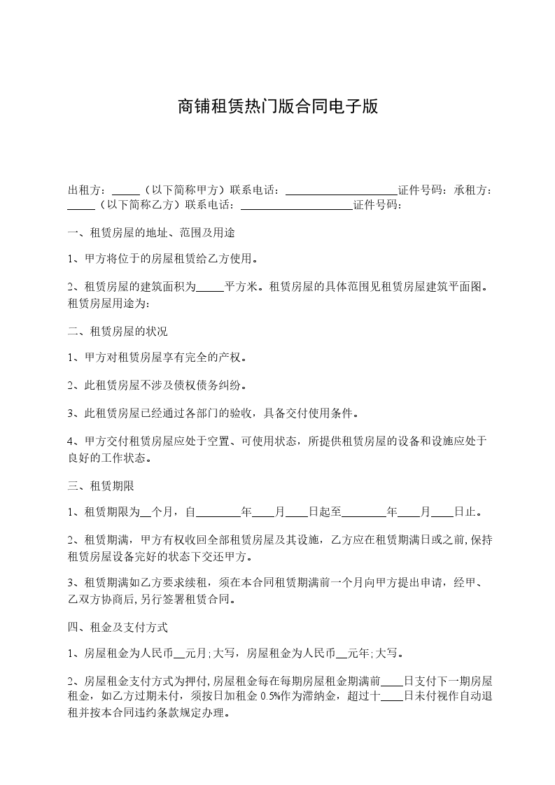 2、甲方于_年__月_日将商铺交付乙方使用。