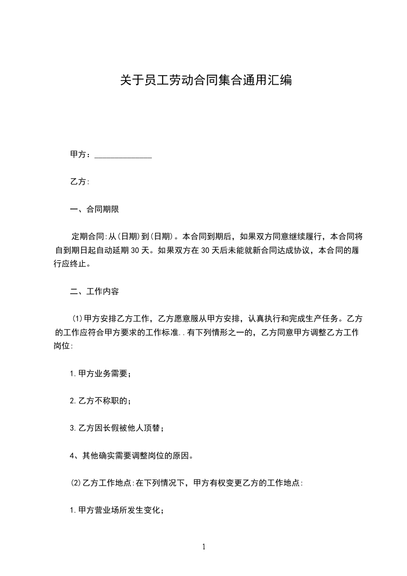 (1)甲方安排乙方工作,乙方愿意服从甲方安排,认真执行和完成生产任务。乙方的工作应符合甲方要求的工作标准..有下列情形之一的,乙方同意甲方调整乙方工作岗位: