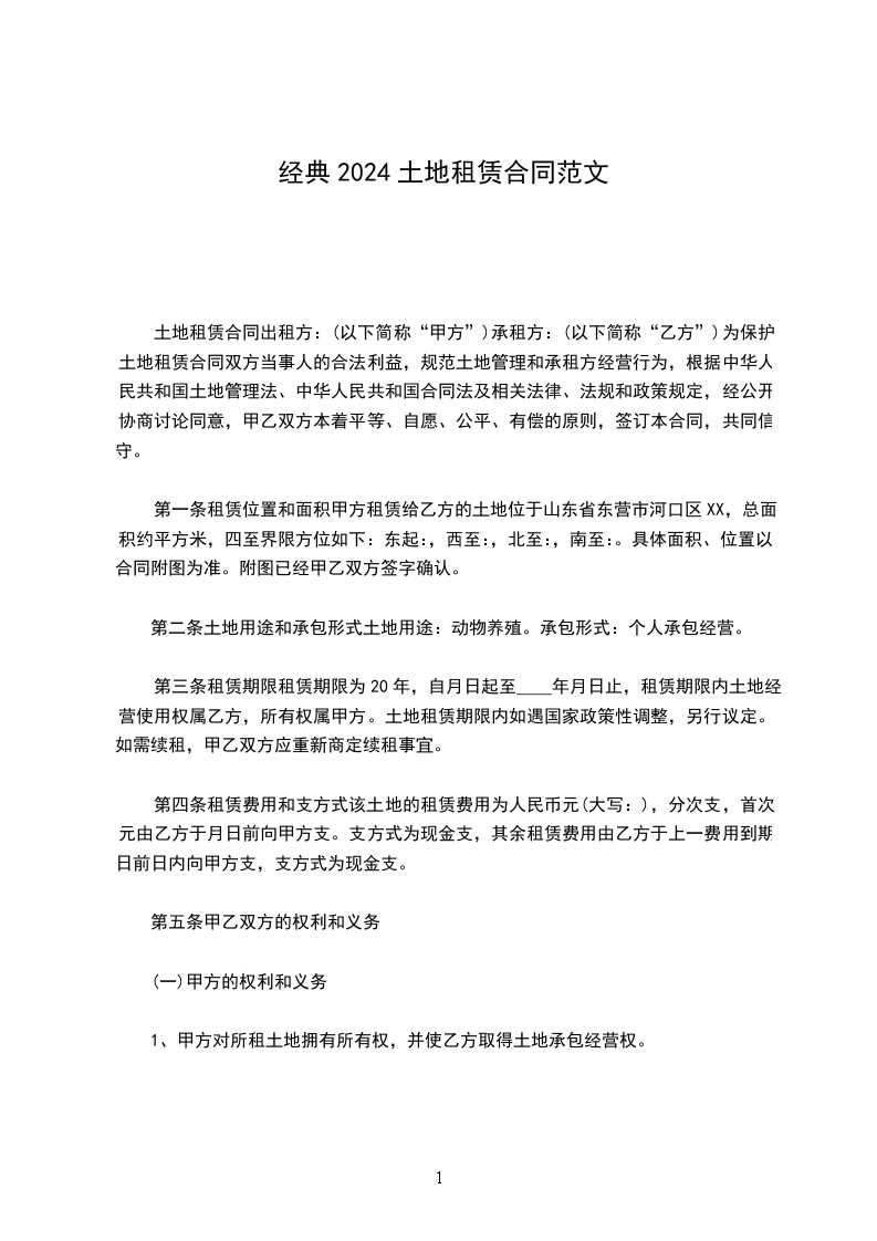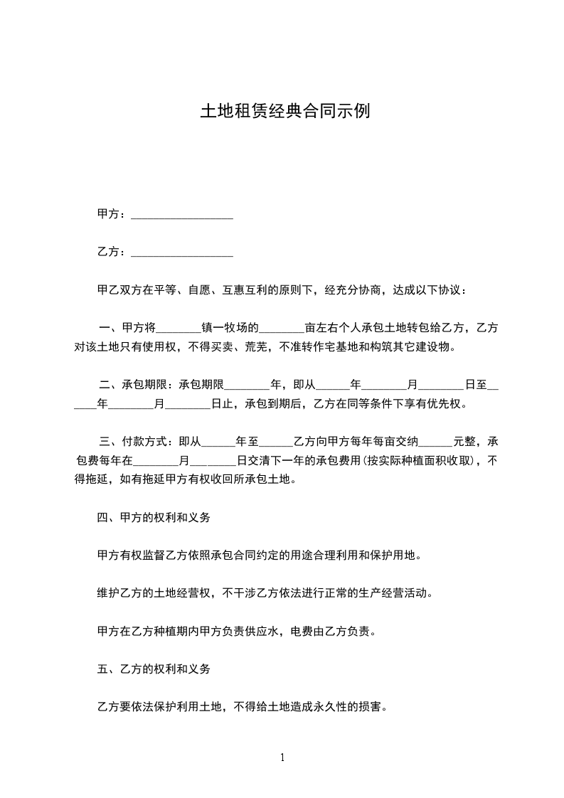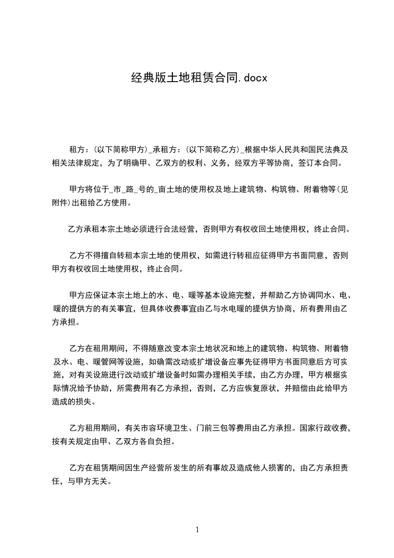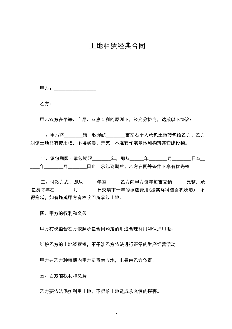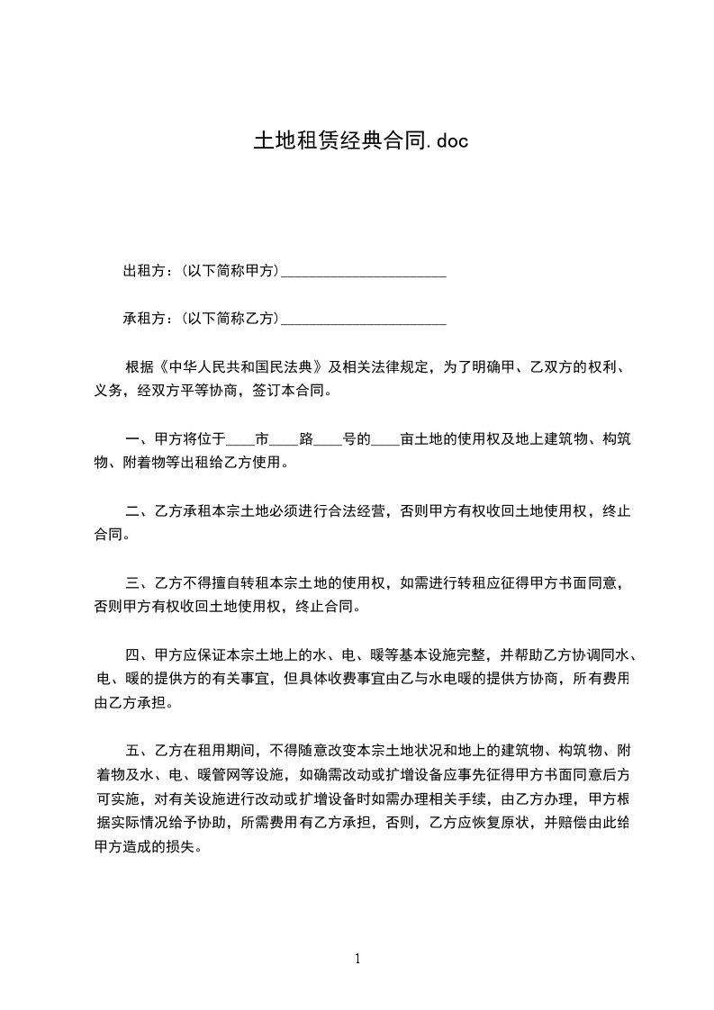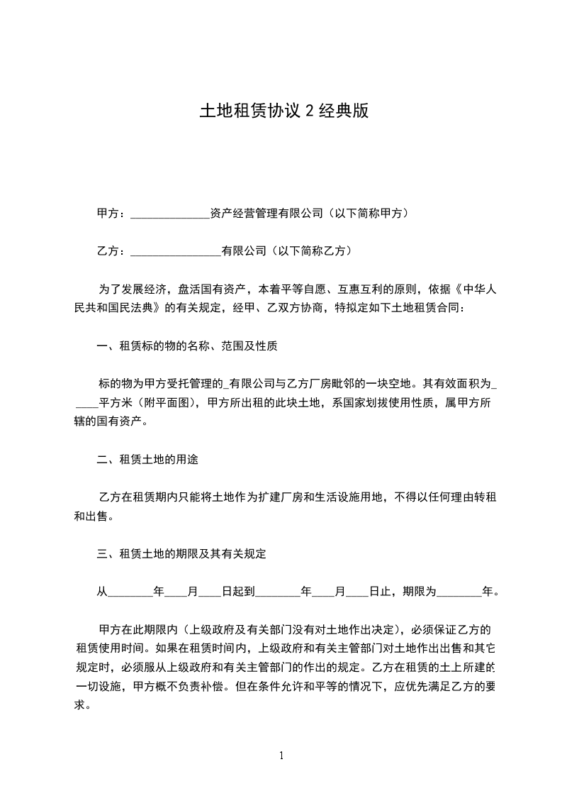 为了发展经济,盘活国有资产,本着平等自愿、互惠互利的原则,依据《中华人民共和国民法典》的有关规定,经甲、乙双方协商,特拟定如下土地租赁合同: