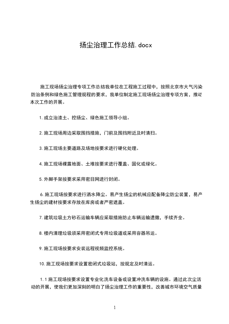 施工现场要防止扬尘,运料汽车出现场大门必须有人负责保洁工作,配备相应的洒水设备。保持地面潮湿、清洁,以防扬尘污染空气。