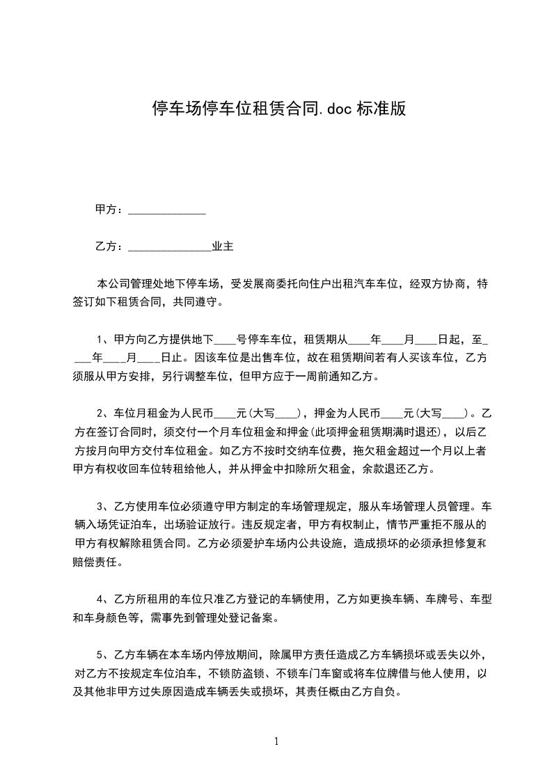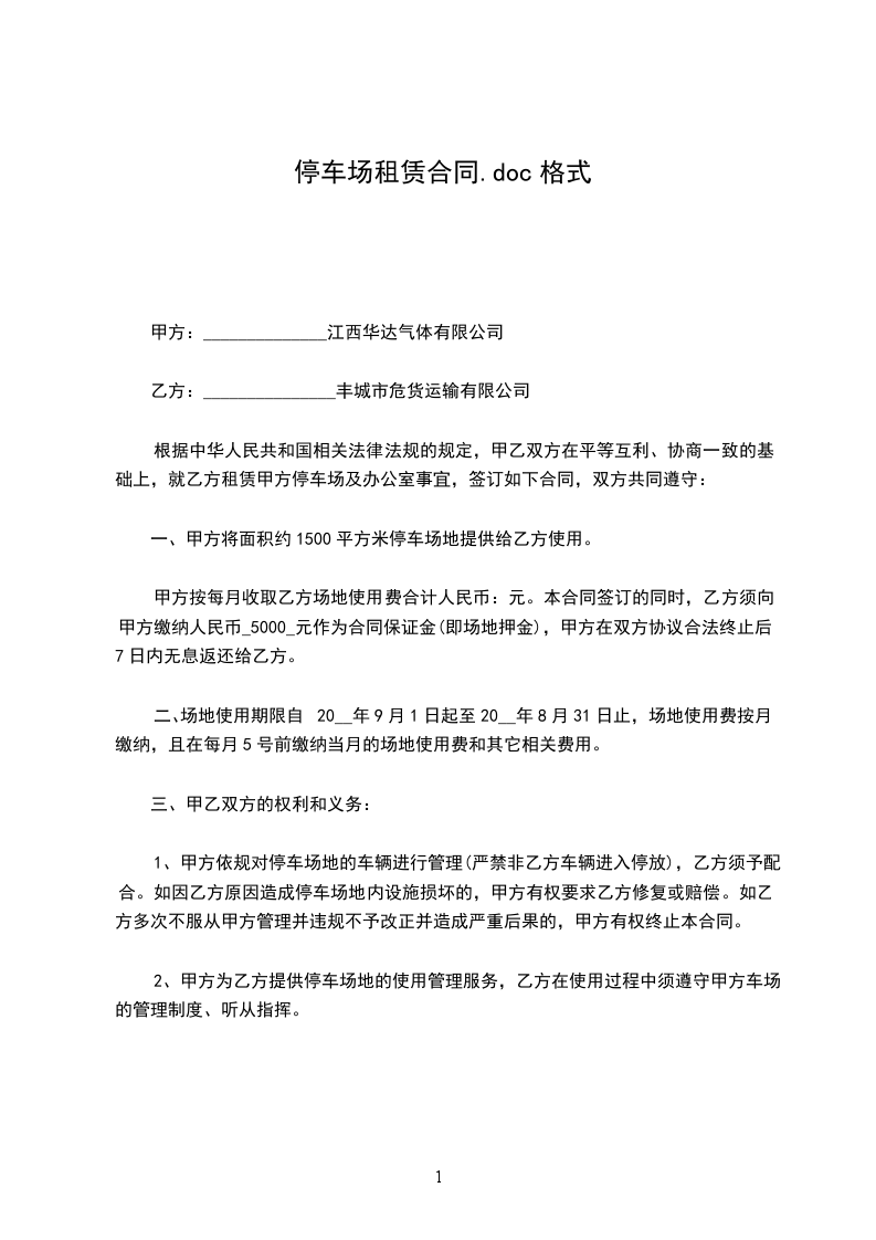 一、甲方将面积约1500平方米停车场地提供给乙方使用。
