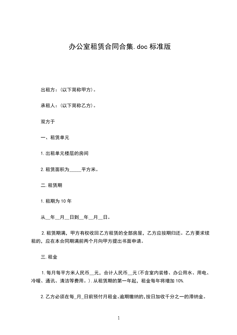一、甲方同意将自有的坐落于广场座的套房平方米出租给乙方作为办公场所。