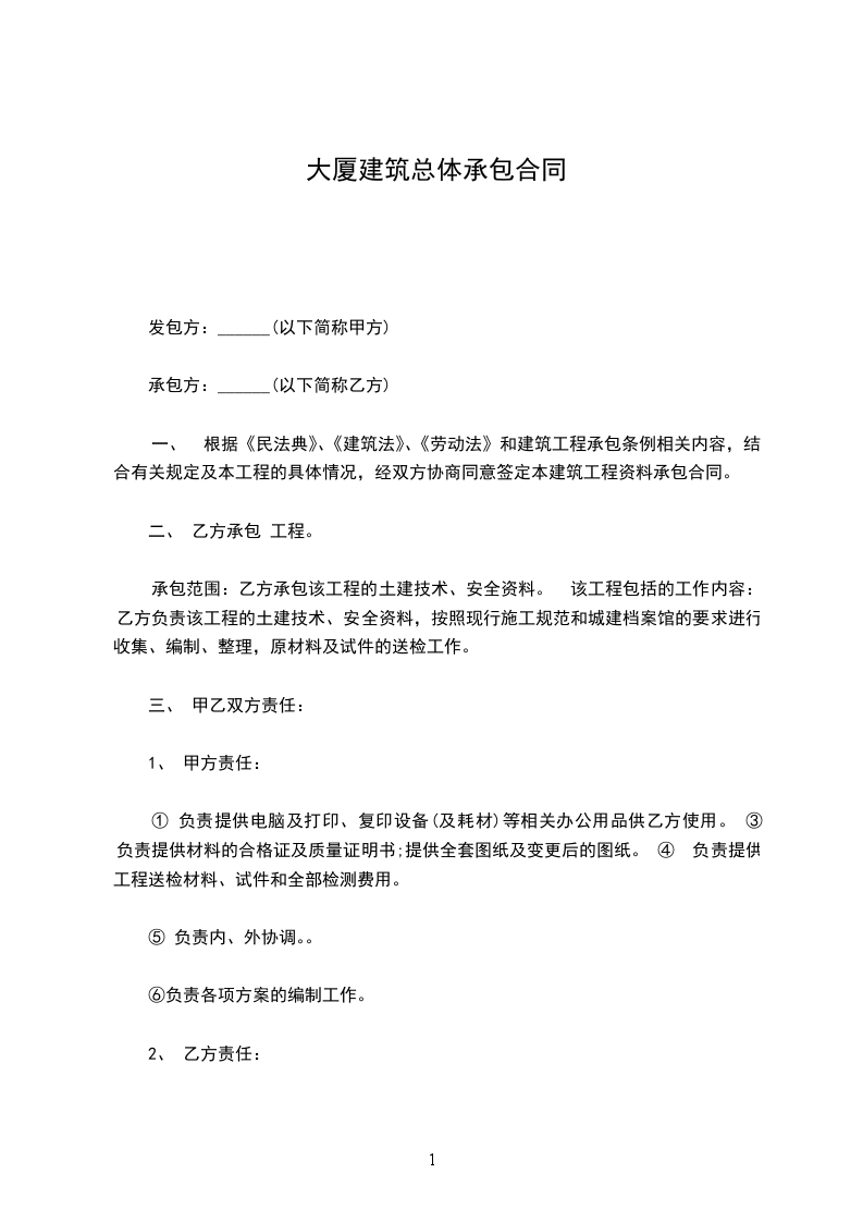 第七条:承包形式及材料设备供应