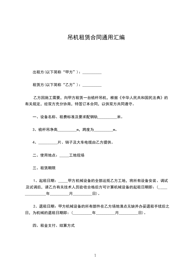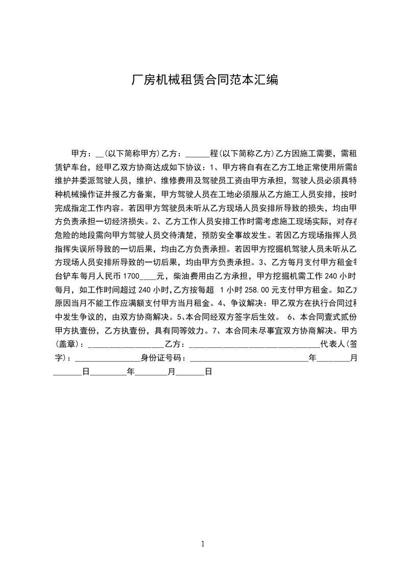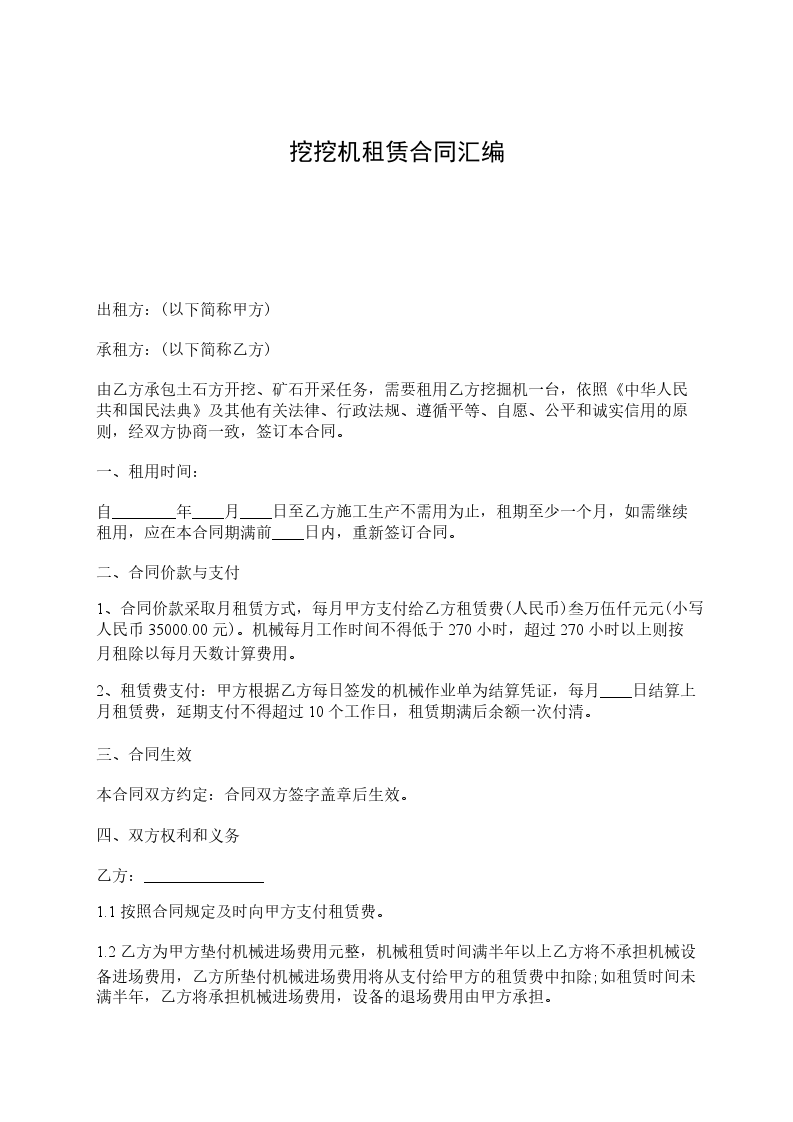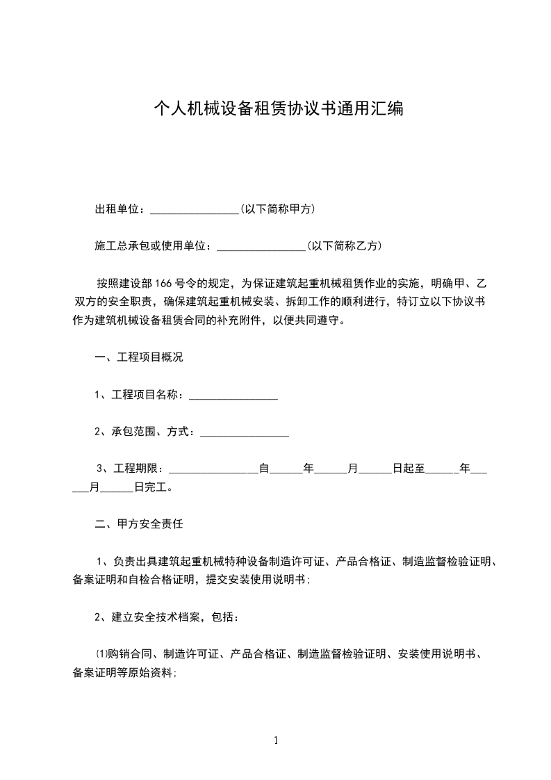 1、租赁期限:______乙方机械到达甲方工地后,从甲方使用之日起开始计租,至甲方下达停租通知之日起停租。