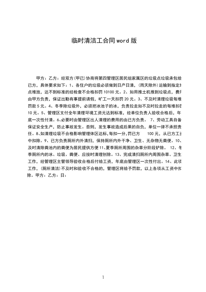 1、乙方工作态度恶劣,打扫卫生多次不合格,或存在参与、支持有损甲方或管理处安全、利益、形象的行为,甲方有权中止本合同。