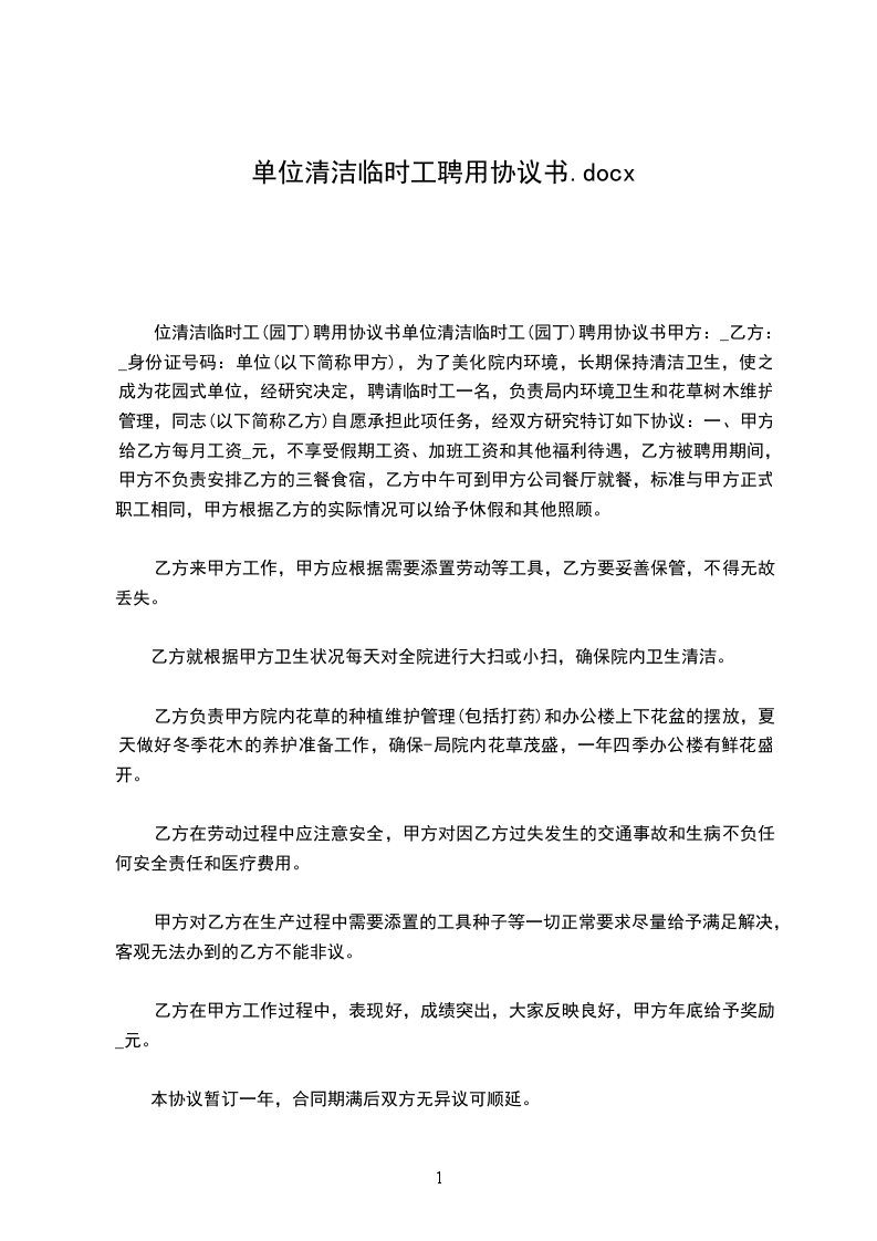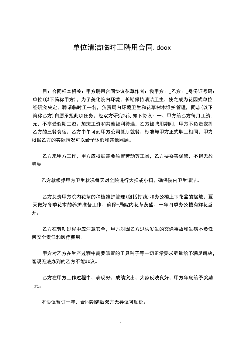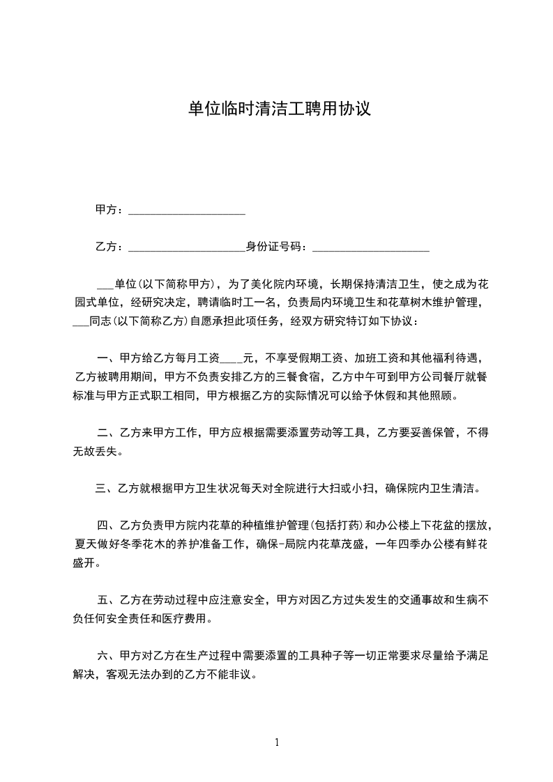 乙方主要负责 (以下简称 ) 等日常清洁工作,主要包括: