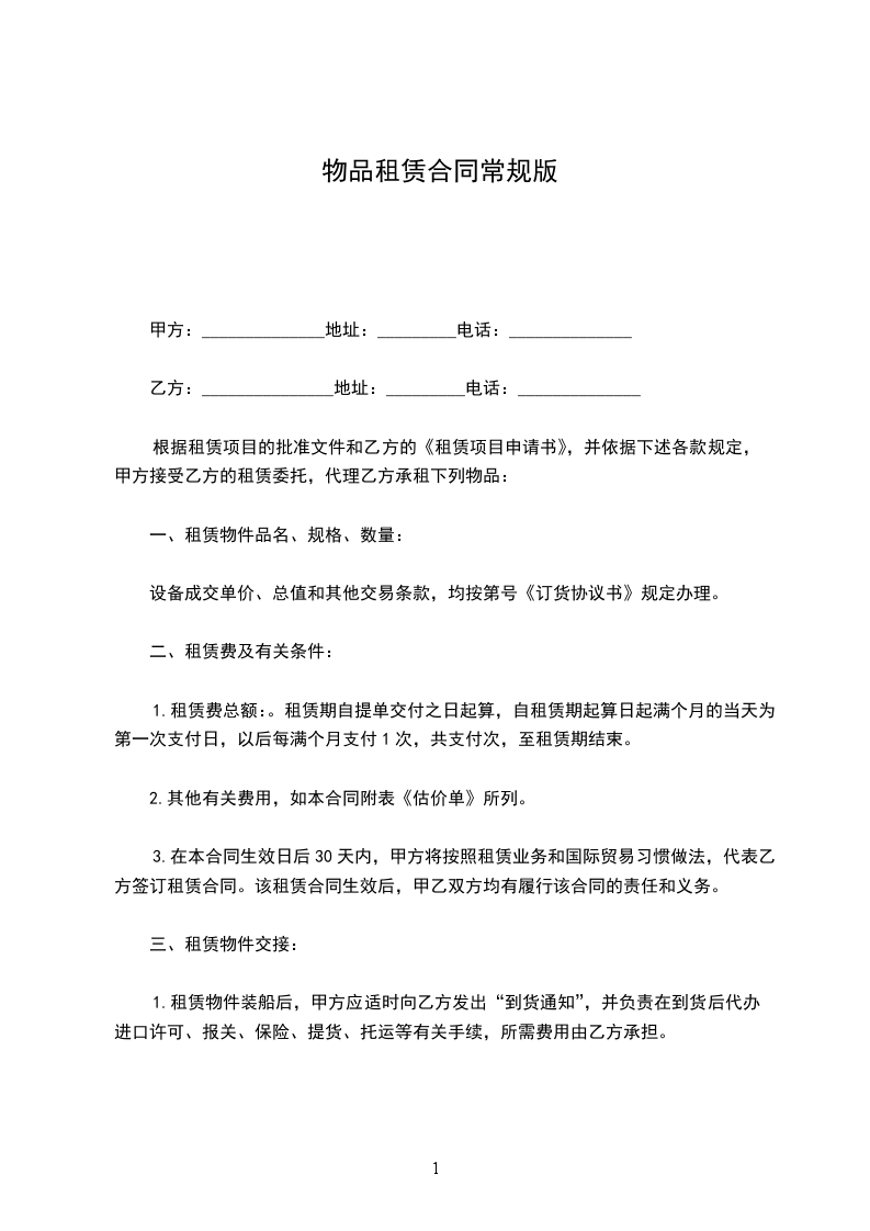 1,未按时间提供租赁物资,应向承租方偿付违约期租金_%的违约金。