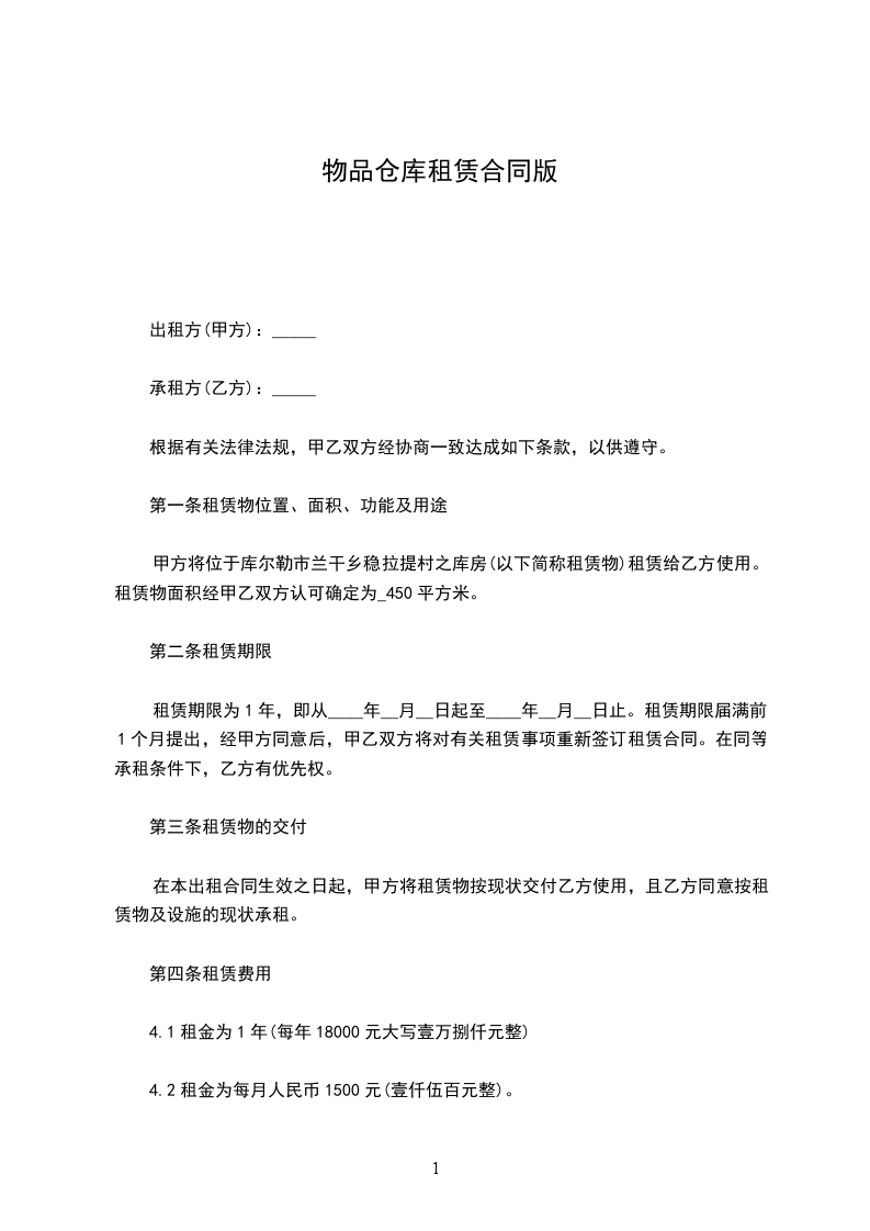 第一条租赁物资的品名、规格、数量、质量。详见合同附件: