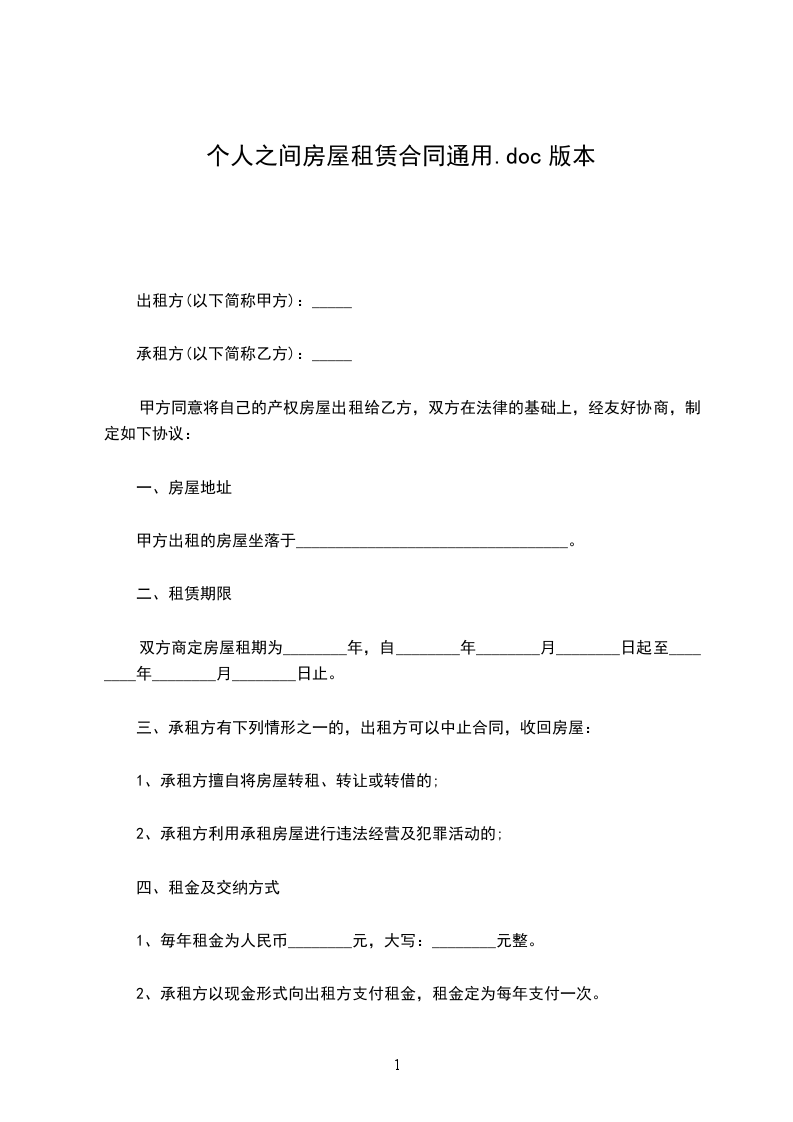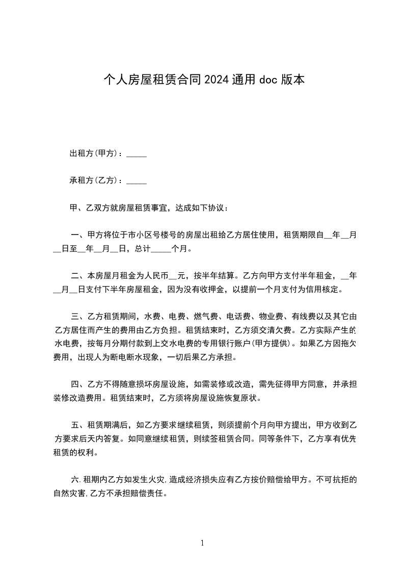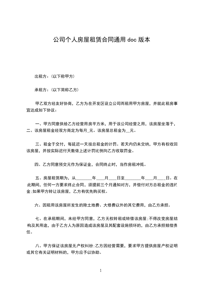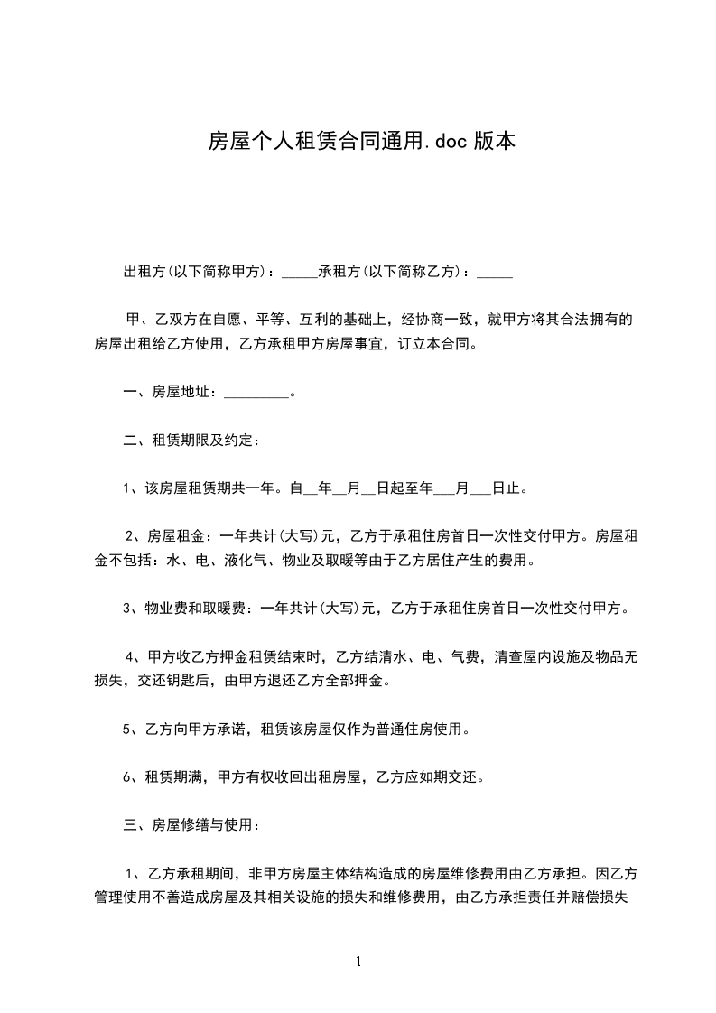 承租方(下称乙方):_____