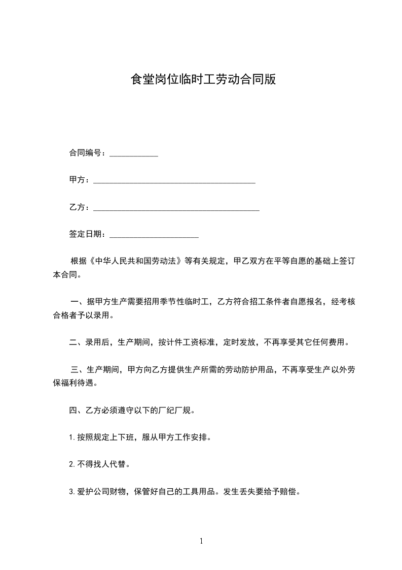 一、据甲方生产需要招用季节性临时工,乙方符合招工条件者自愿报名,经考核合格者予以录用。
