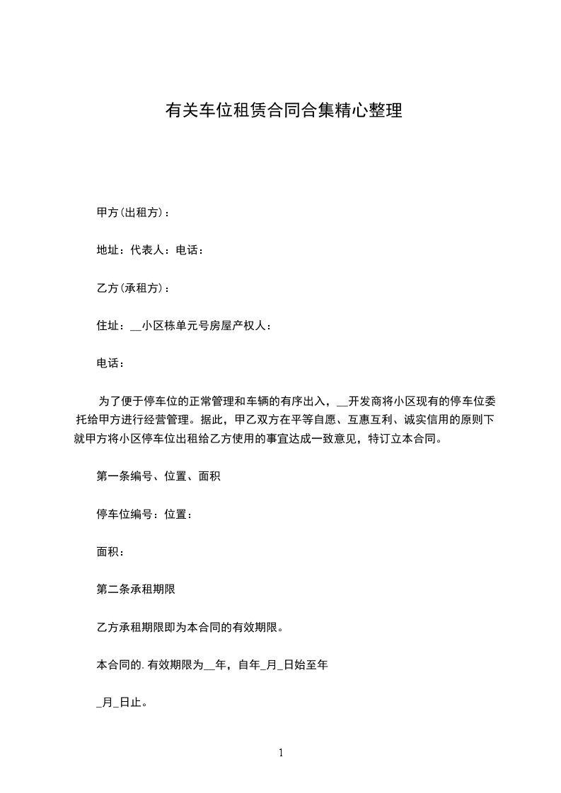 第二条租车位期限为______年,即自_________年__月__日_____起,至______年__月__日止。