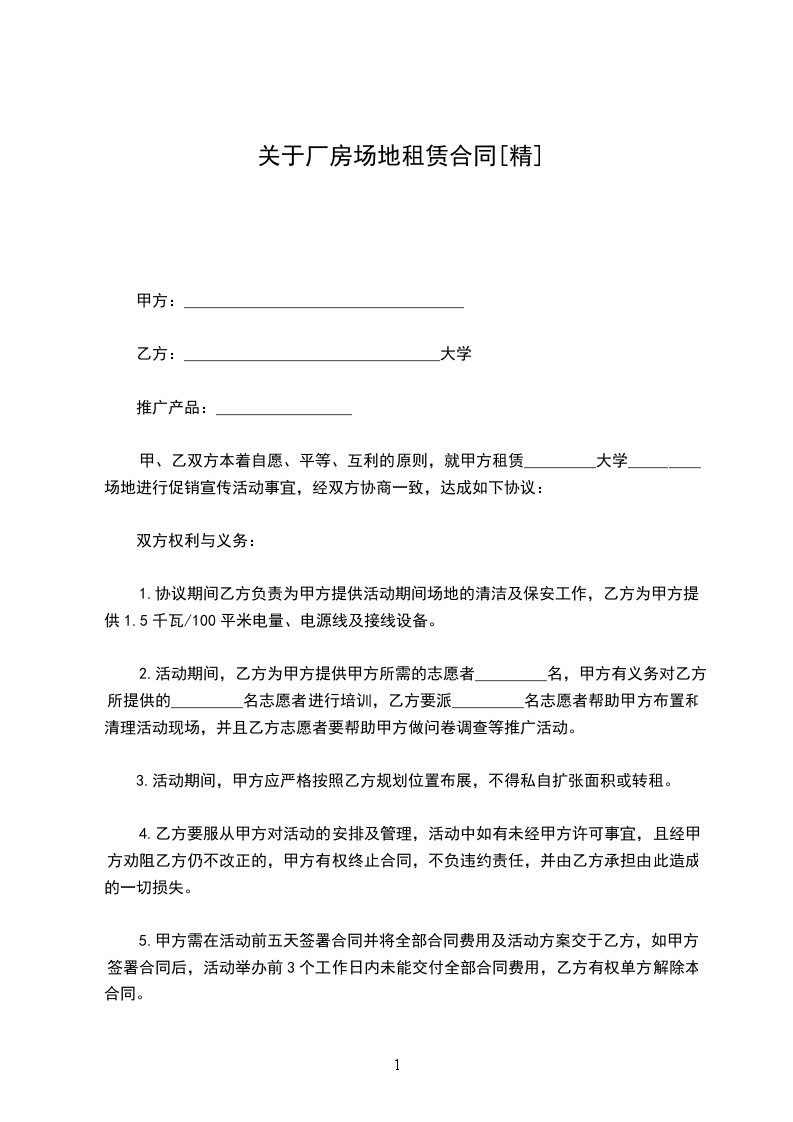 甲、乙双方本着自愿、平等、互利的原则,就甲方租赁_________大学_________场地进行促销宣传活动事宜,经双方协商一致,达成如下协议: