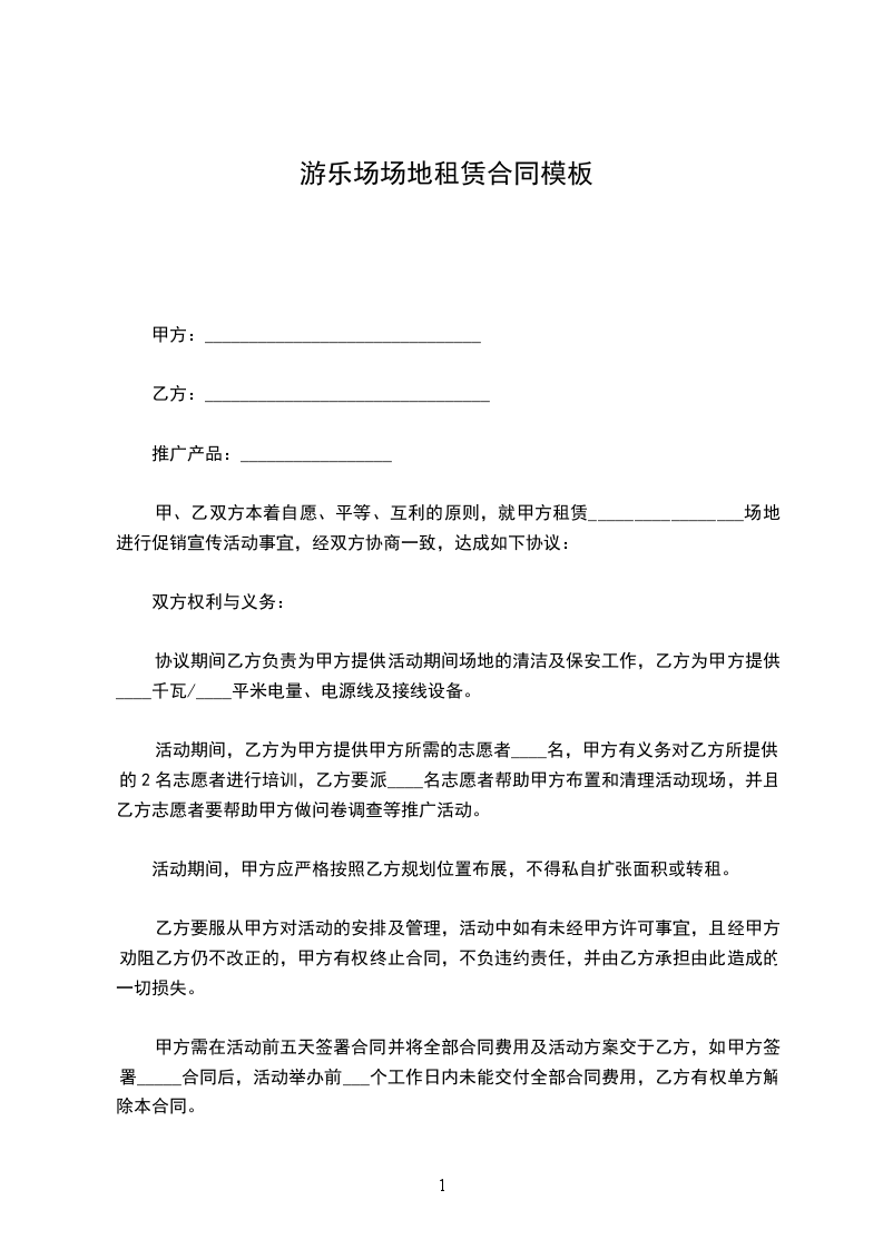 甲、乙双方本着自愿、平等、互利的原则,就甲方租赁_________________场地进行促销宣传活动事宜,经双方协商一致,达成如下协议: