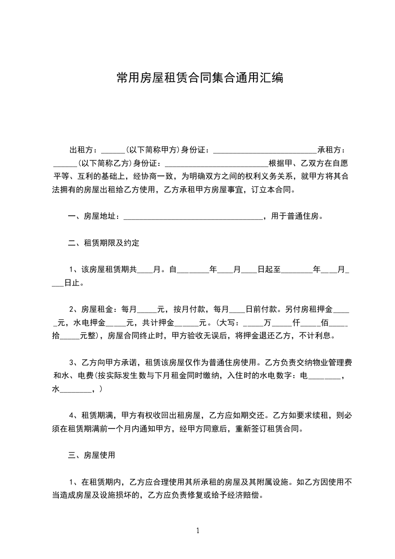出租方:______(以下简称甲方)身份证:__________________________承租方:______(以下简称乙方)身份证:__________________________根据甲、乙双方在自愿、平等、互利的基础上,经协商一致,为明确双方之间的权利义务关系,就甲方将其合法拥有的房屋出租给乙方使用,乙方承租甲方房屋事宜,订立本合同。