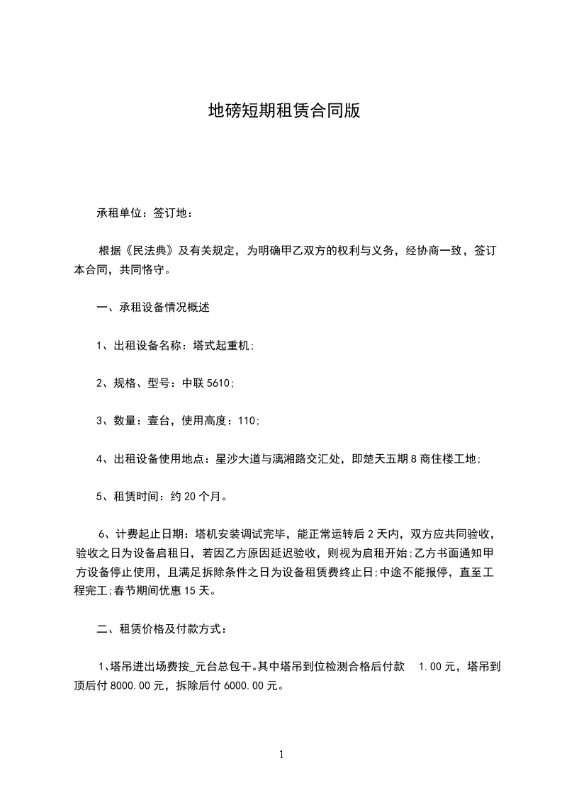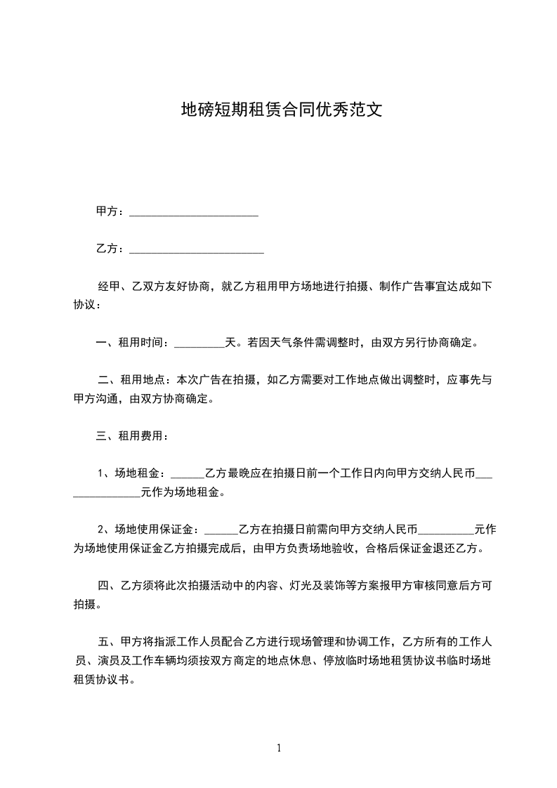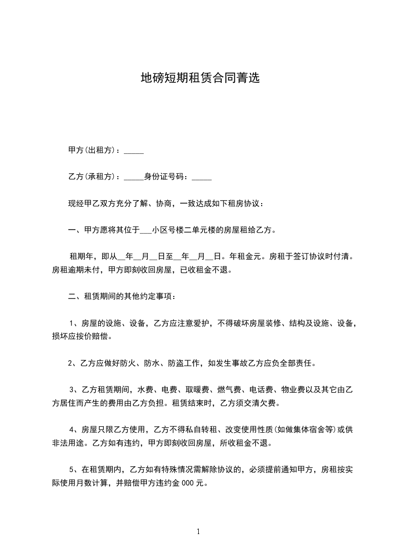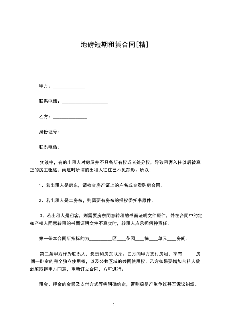 承租方(乙方):__________,男女,身份证号码___________________________