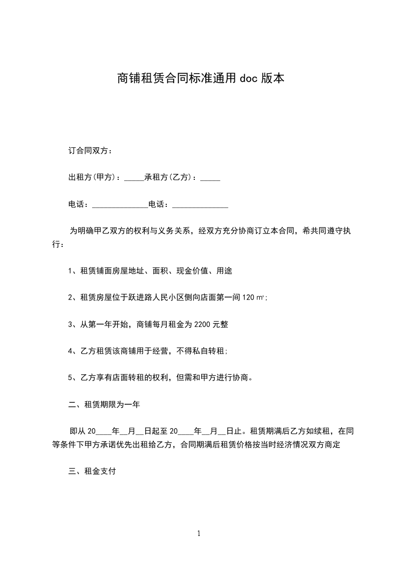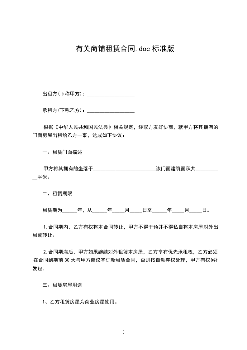 十二、(1)本协议自双方签字或盖章之日起生效,自双方签订的商铺租赁合同履行完毕时终止,本协议一式叁份,甲方执贰份,乙方执壹份;