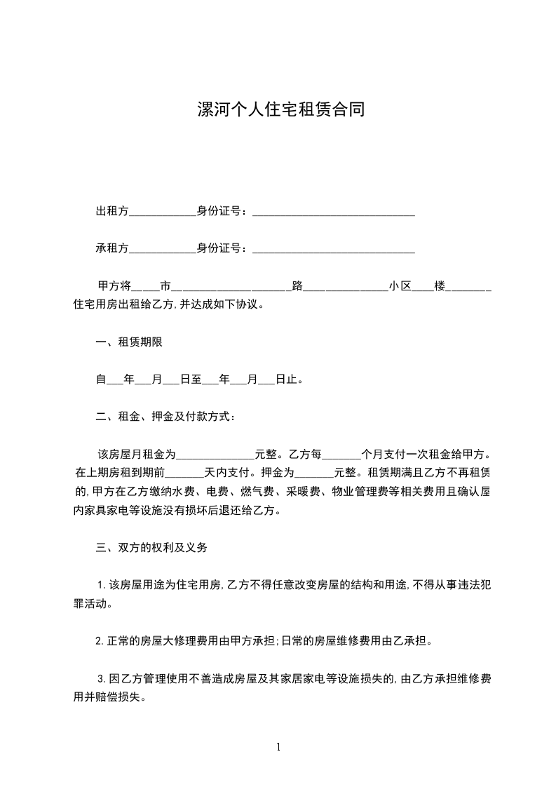 甲方将_____市_____________________路_______________小区____楼________住宅用房出租给乙方,并达成如下协议。
