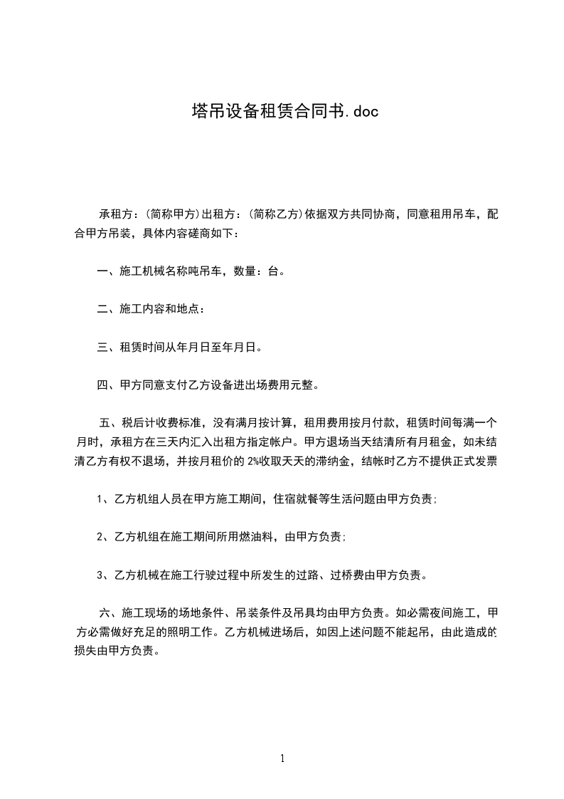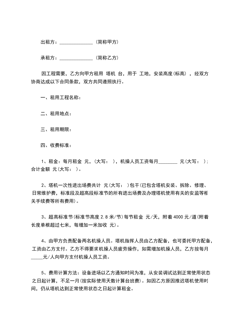 六、设备租赁期限为_____年,租期从供货厂向甲方托收贷款时算起,租金总额为人民币__________元(包括手续费___%),分_____期交付,每期租赁金_____元,由甲方在每期期末按期向乙方托所如乙方不能按期承付租金,甲方则按逾期租金总额每天加收万分之三的罚金。